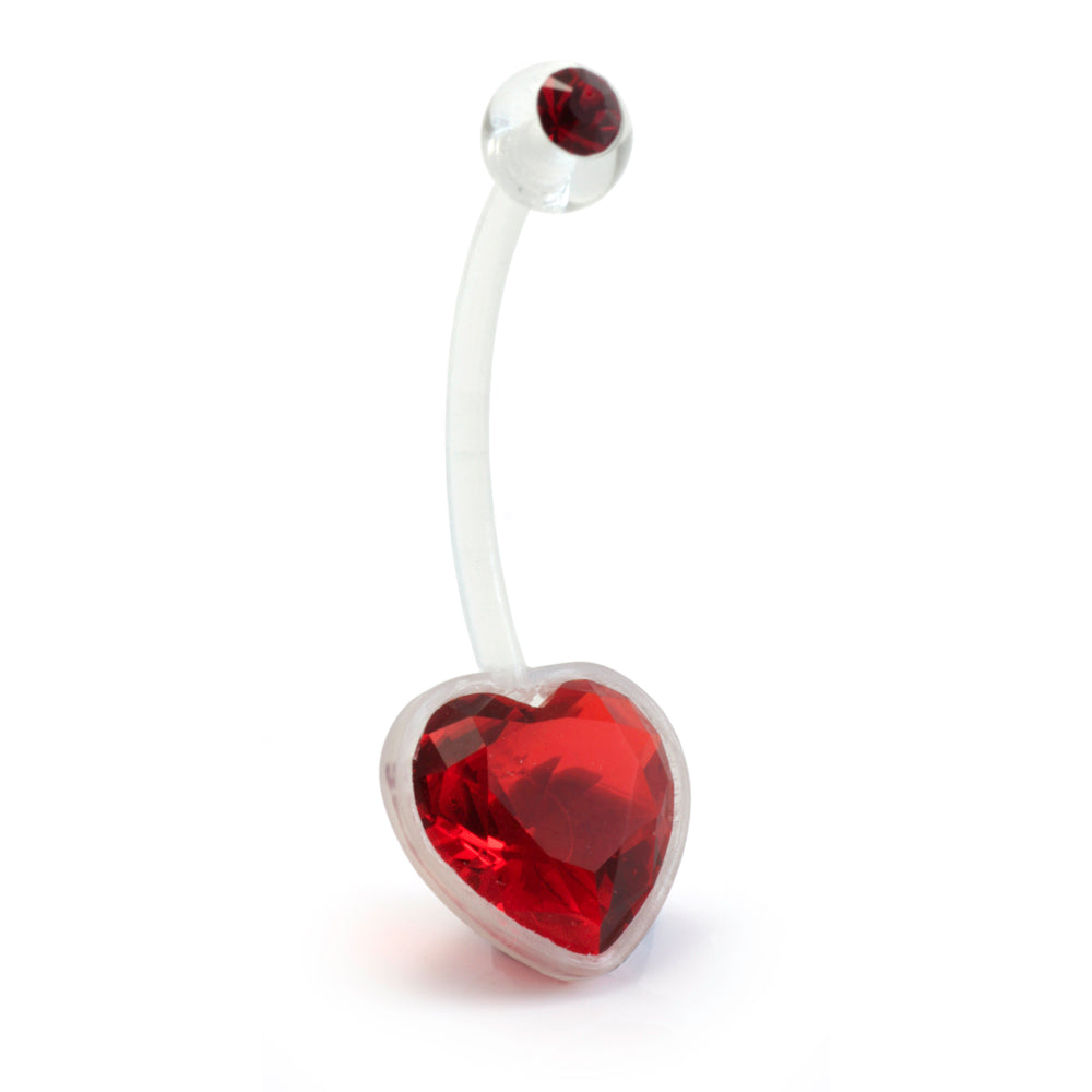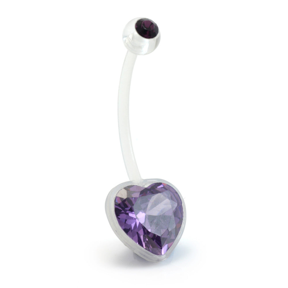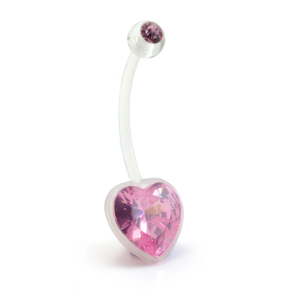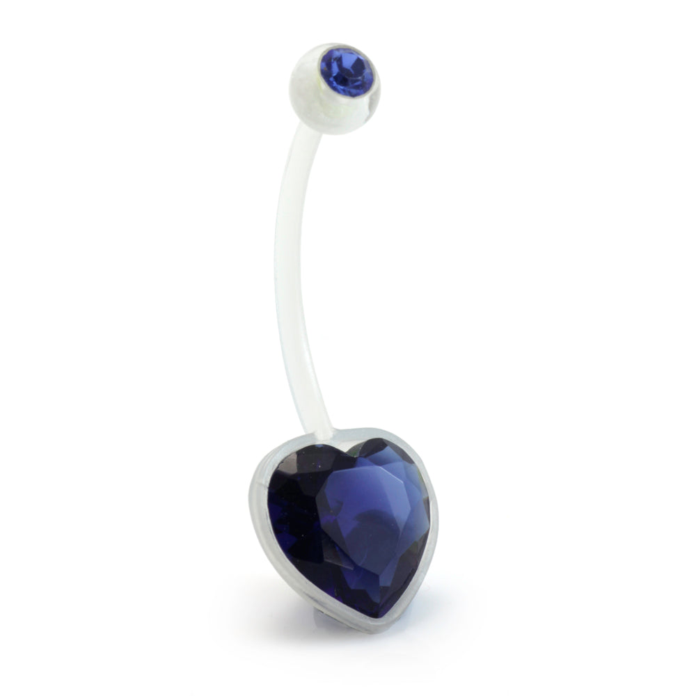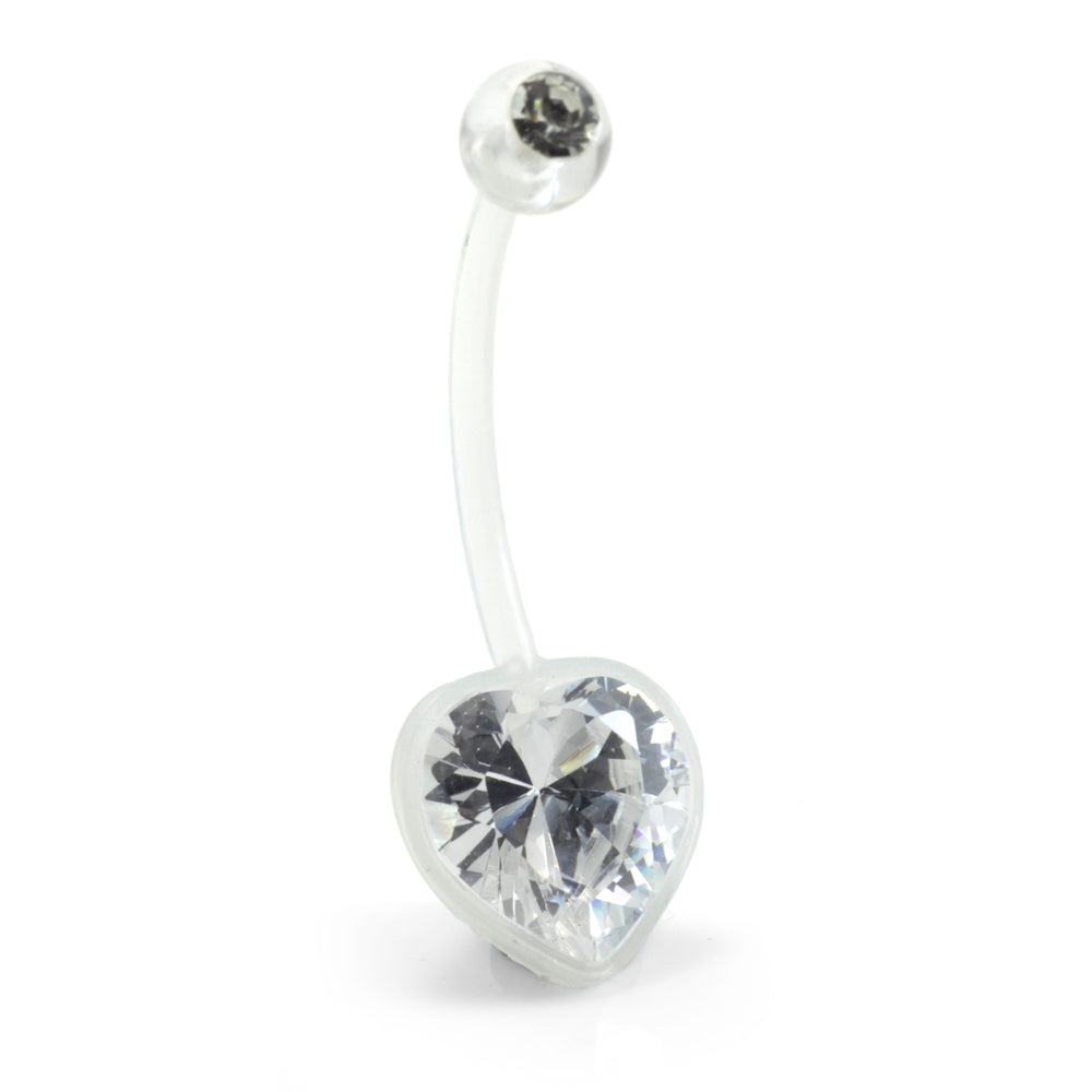 Flexible curved Belly Bar with Gem Heart and top ball - Can be worn during pregnancy Gauge: 1.6mm Length: 20mm