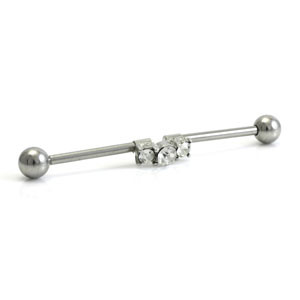 316L Cast Steel Industrial Bar with 3 Gems Gauge: 1.6mm Bar Length: 38mm Ball Size: 5mm