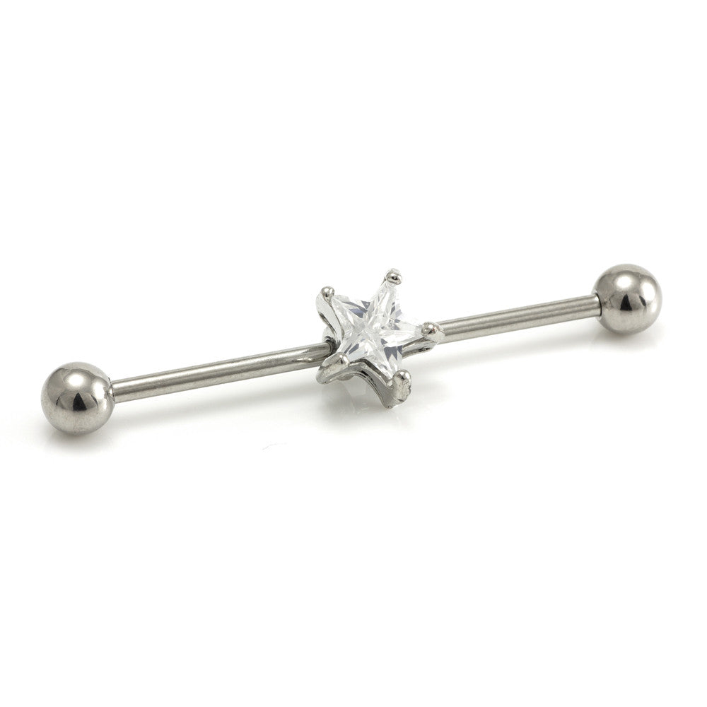 316L Steel Industrial Bar with Gem Star Gauge: 1.6mm Sizes: 35mm / 38mm Gem Colour: Crystal or Lt Rose Ball Size: 5mm