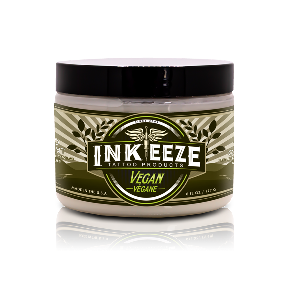 &ltstrong&gtOintment:&lt/strong&gt INK-EEZE Vegan Tattoo Ointment is a All Natural based ointment infused with essential oils. The formula was specifically developed by tattooers and skin care specialists for use as a lubricant during the tattoo process and collectors to use as an aftercare. A little goes a long way. &ltstrong&gtDirections:&lt/strong&gt Store in a cool, dry place. For the artist - Apply as needed during the tattoo application. For aftercare - Apply thin coats as needed during the recovery period. &ltstrong&gtWarnings:&lt/strong&gt Keep out of reach of children. Avoid contact with eyes. In case of accidental contact with eyes rinse with cold water. &ltstrong&gtActive ingredients:&lt/strong&gt Helianthus Annuus (Sunflower) Seed Oil Synthetic Beeswax Tribehenin Curcuma Longa (Turmeric) Root Oil Calendula Officinalis Flower Extract Bisabolol (Natural)