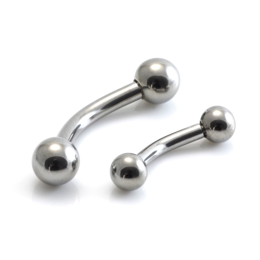 Titanium Banana Bar with Plain Balls Gauge: 1.6mm (thread on ball 1.2mm)Sizes: 6/8/10/12/14/16mmBall sizes: 3/4/5/6mmFits all QDD attachments Medical Grade Titanium 6Al-4VEli ASTM:F-136