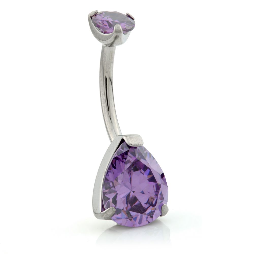 Internal Ti Tear Double Jewelled Navel Gauge: 1.6mm Size: 10mm Gem Colour: Crystal, AB, Pink, Violet Medical Grade Titanium 6Al-4VEli ASTM:F-136