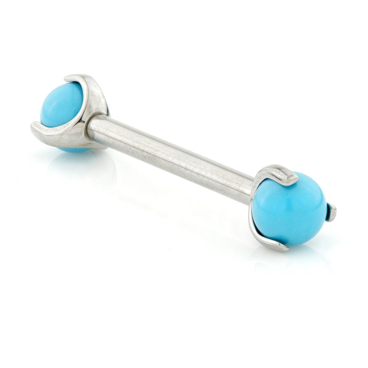 Internal Titanium Nipple Bar with Turquoise Stone Please note, one end is fixed on to the bar and the other is removable. Gauge: 1.6mm Sizes: 12/14/16mmMedical Grade Titanium 6Al-4VEli ASTM:F-136