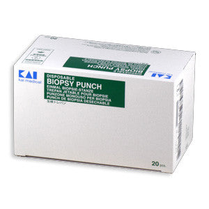 Box of 20 disposable dermal punches, individually packed in sterile packets (single use). Kai biopsy punches are the highest quality and sharpest available. With rib handle for easy control and comfort during biopsy procedure. We only sell this product to the piercing and tattoo industry. Sizes: 1mm, 1.5mm, 2mm, 3mm, 4mm, 5mm, 6mm, 8mm