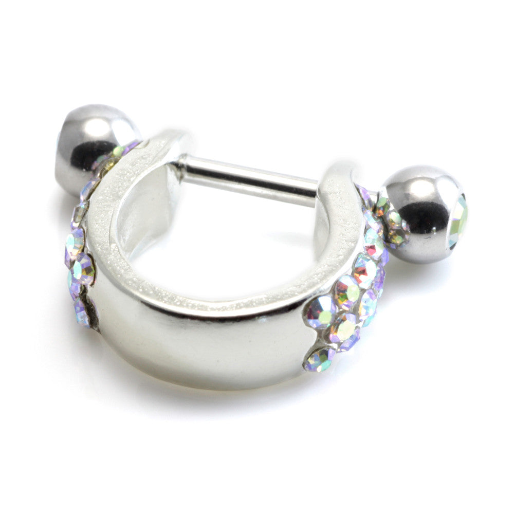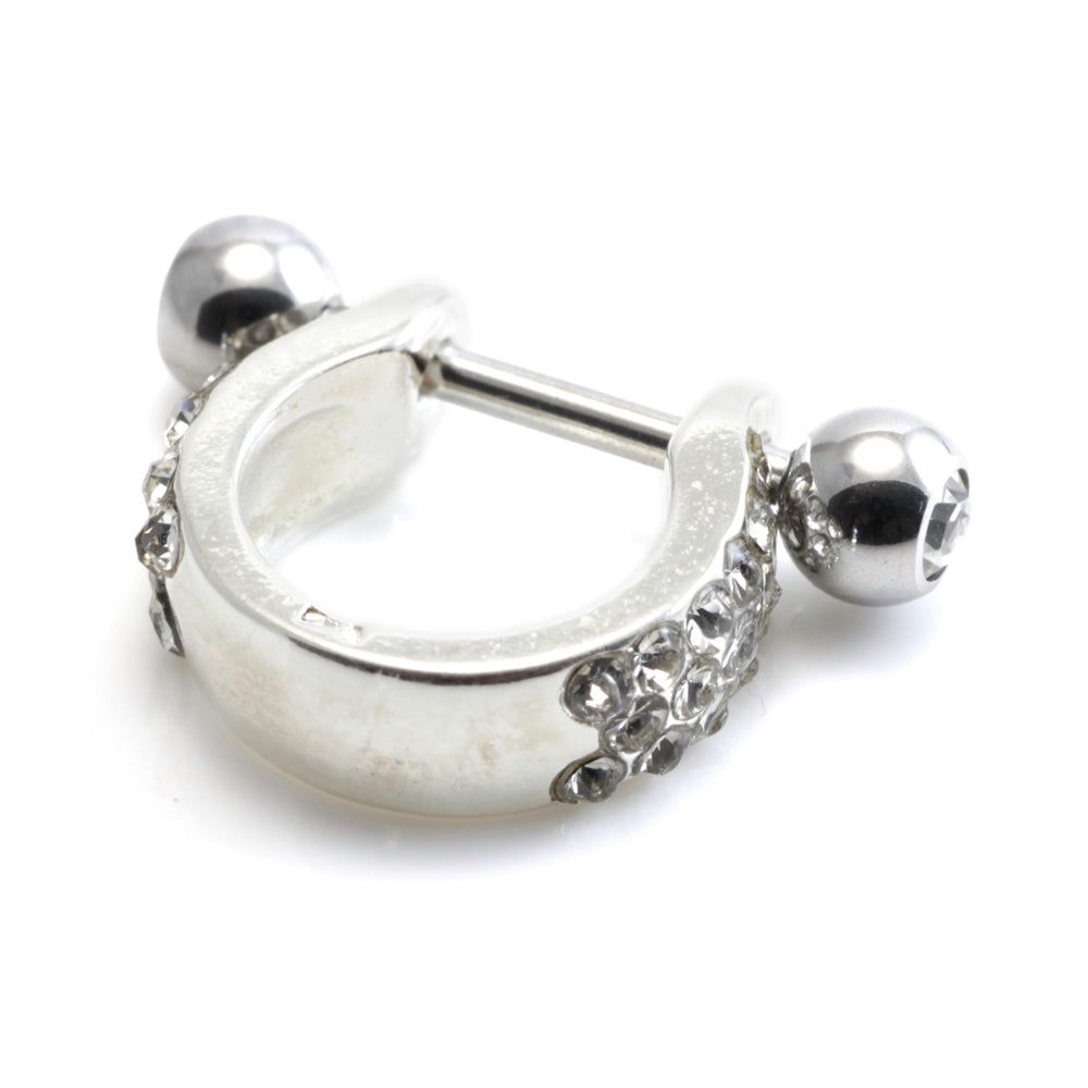 For Tragus & Helix piercings, Rhodium Plated Size: 1.2mm x 8mm with 4mm balls (inside measurement is 6mm) Gem Colour: Crystal or AB 1 x cuff with gem bar