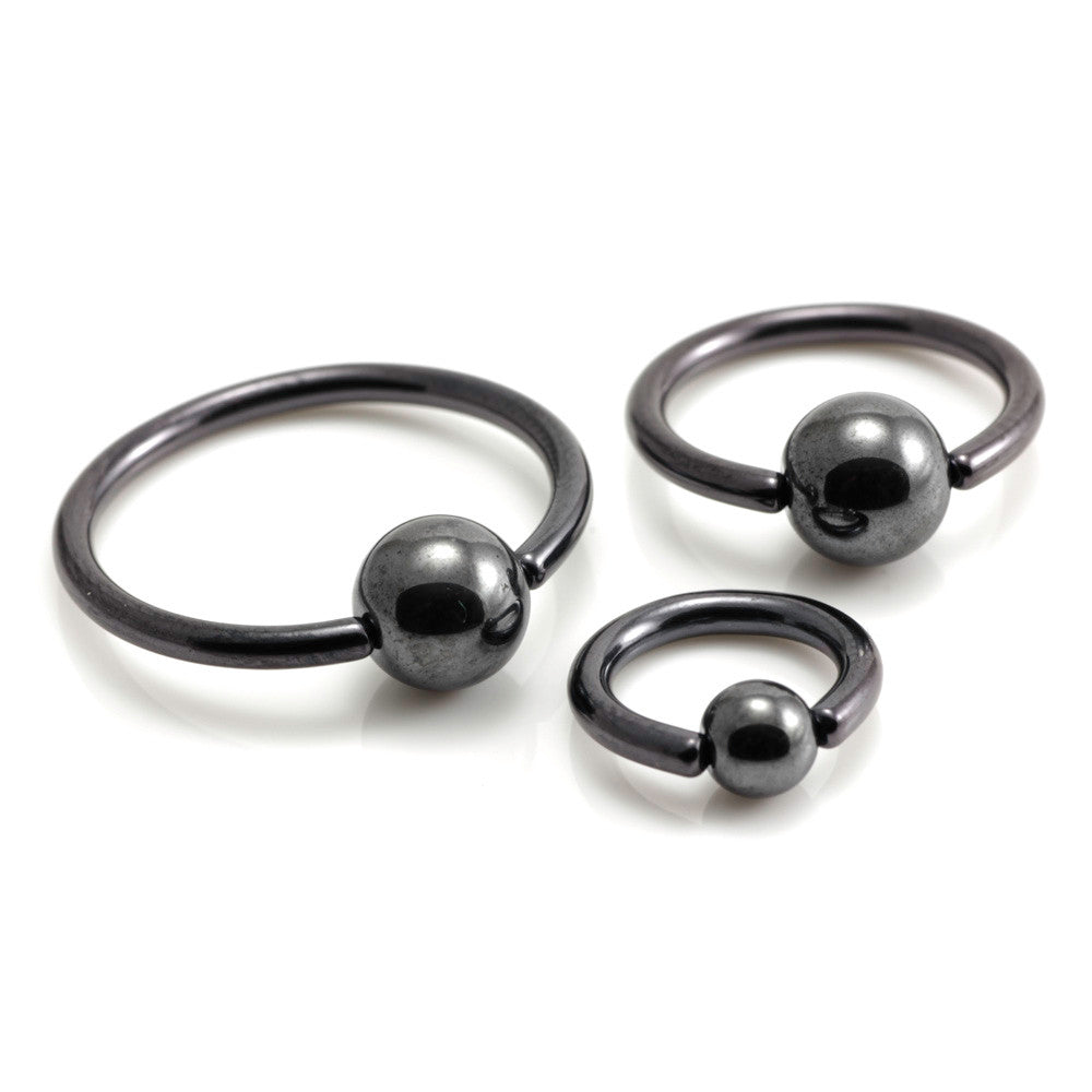 PVD Black on Titanium BCR with Hematite Bead Gauge: 1.6mm Sizes: 8/10/12/14/16mm Ball size as standard