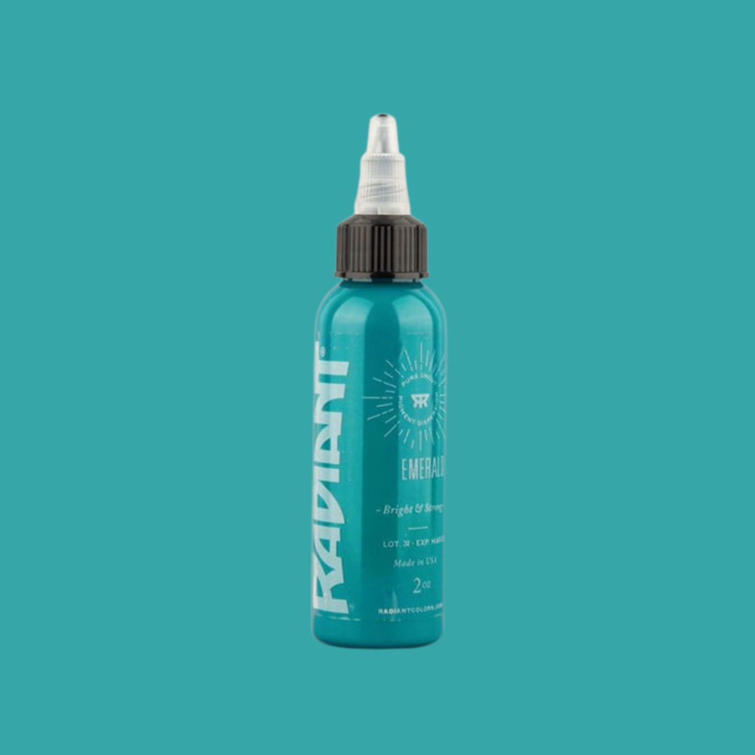 The perfect mix of blue and green made this gem of colour. Single bottle of https://www.wholesalebodyjewellery.com/tattoo-supplies/product/tattoo-inks/radiant.html Radiant Ink . Available in 1oz. Sterilised, easy to apply, pure, uncut homogenised pigment.
