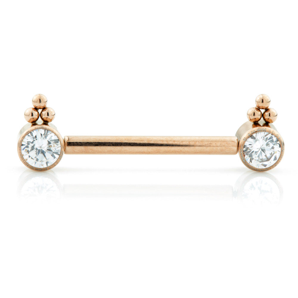 Rose Gold Ti Threadless Forward Facing Double Jewelled Disk Barbell