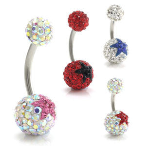 Gem Belly Bar 25% REDUCTION WAS £2.50 NOW £1.90 Gauge: 1.6mm Sizes: 6mm, 8mm,10mm and 12mm Gem Colours: AB Crystal & Red/Crystal & Sapphire/Red & Black/AB Crystal & Rose