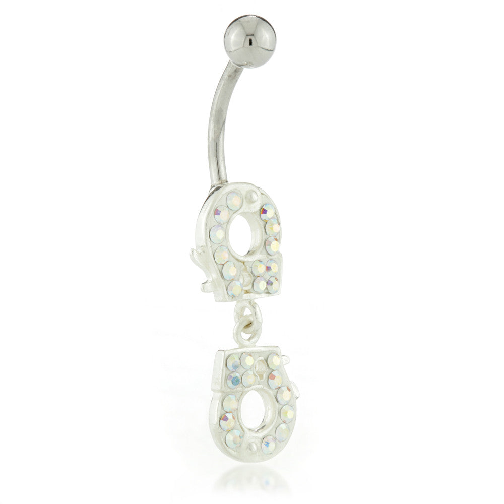 SALE - Silver External Gem Handcuffs Belly Bar Gauge: 1.6mm Sizes: 8/10/12mm Gem Colours: LS, JT, AB 925 Silver Setting with 316L Steel Bar