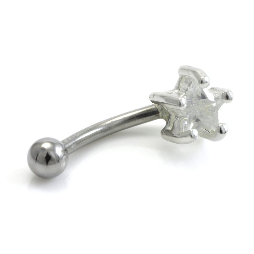 SALE - Silver External Gem Star on Steel Micro Banana Gauge: 1.2mm Size: 8mm Gem Colour: CR 925 Silver on 316L Surgical Steel Bar
