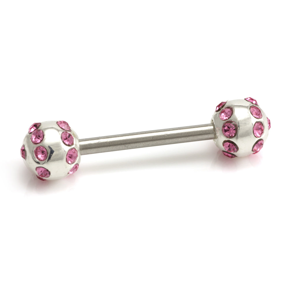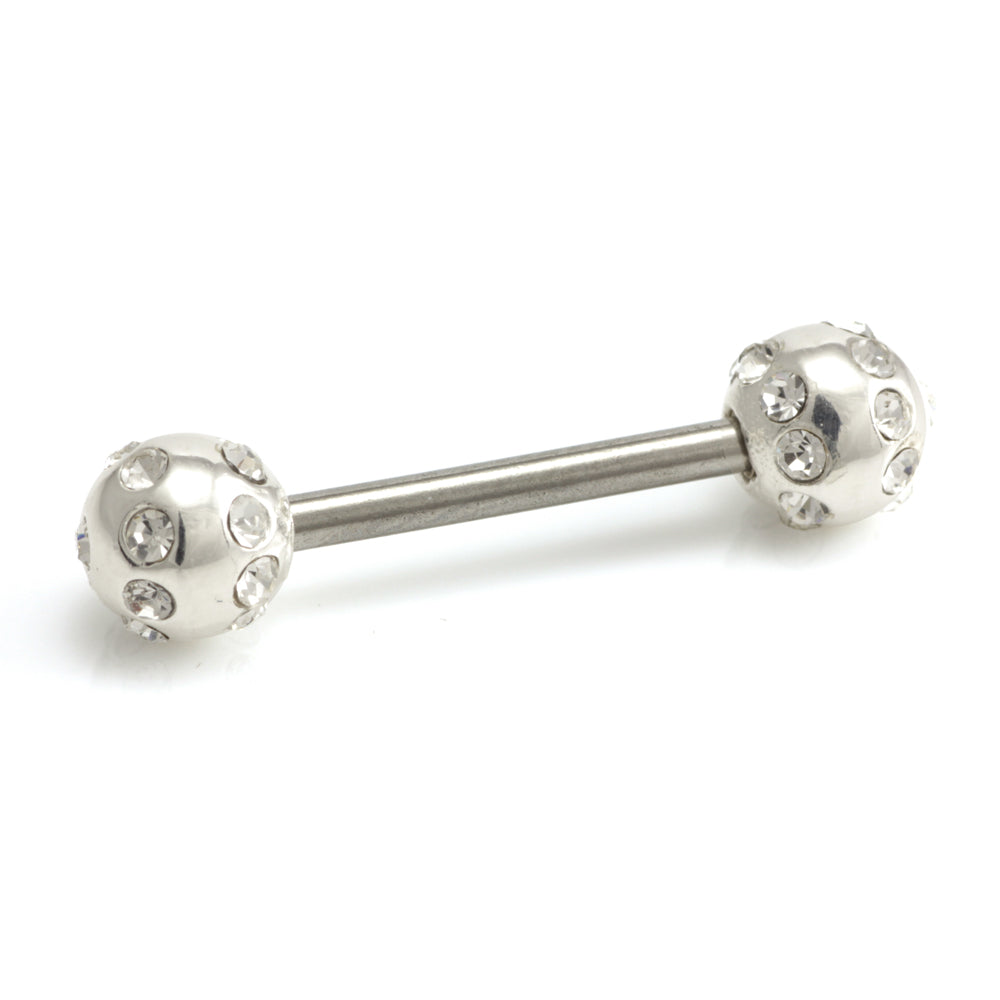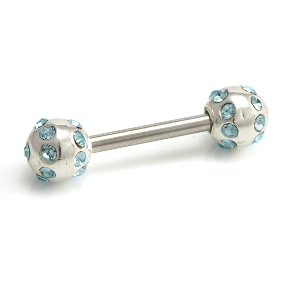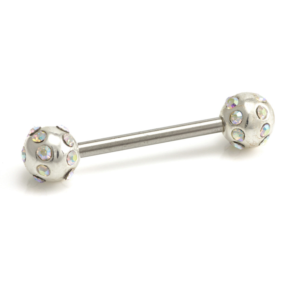 SALE - Silver External Tiffany Ball Nipple Bar (sold individually) Gauge: 1.6mm Sizes: 12/14/16mm Gem Colours: AB/AQ/CR/RD/RS 925 Silver Balls on 316L Surgical Steel Bar