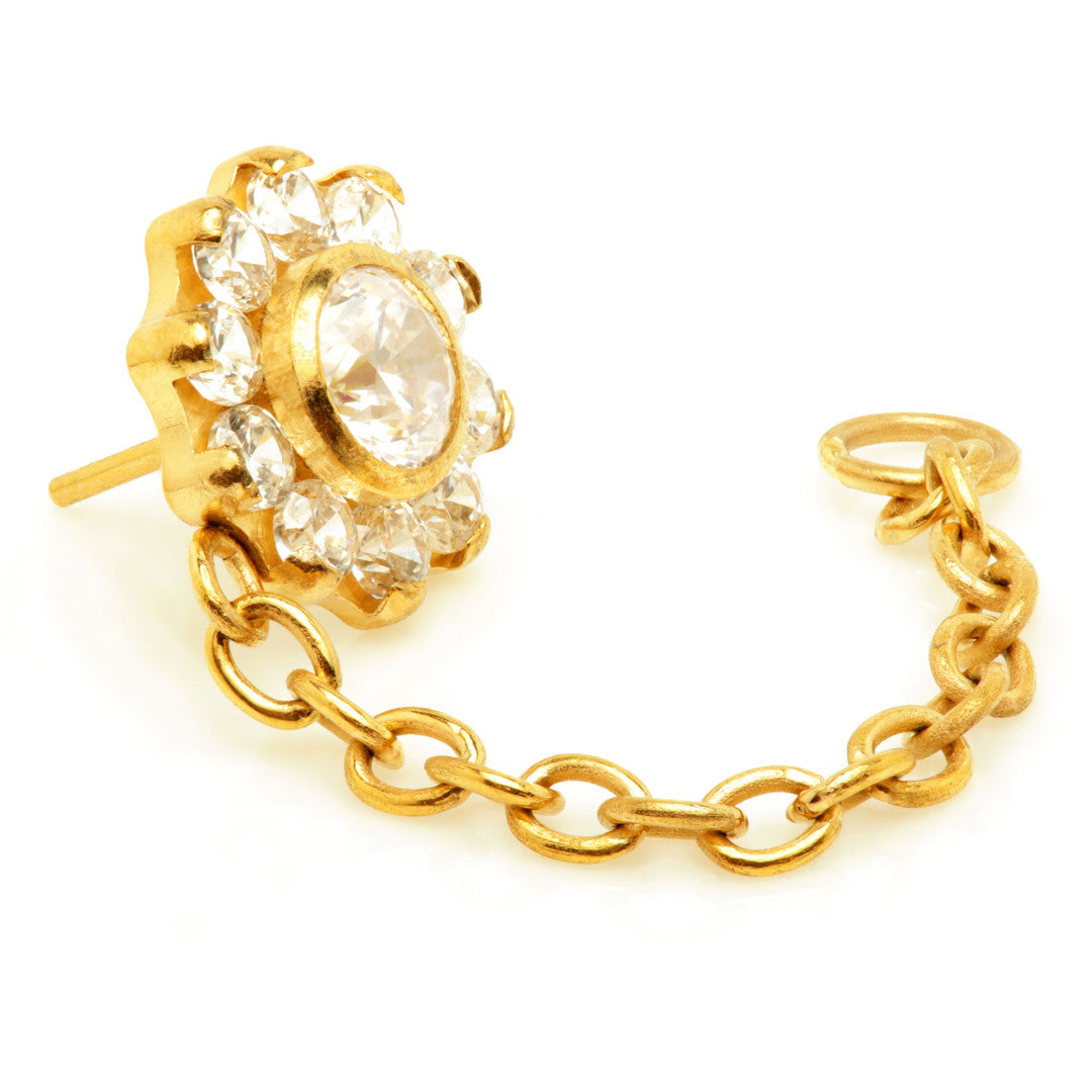 Zircon Gold Ti Threadless Jewelled Flower Attachment with Hanging Chain for Double Piercing