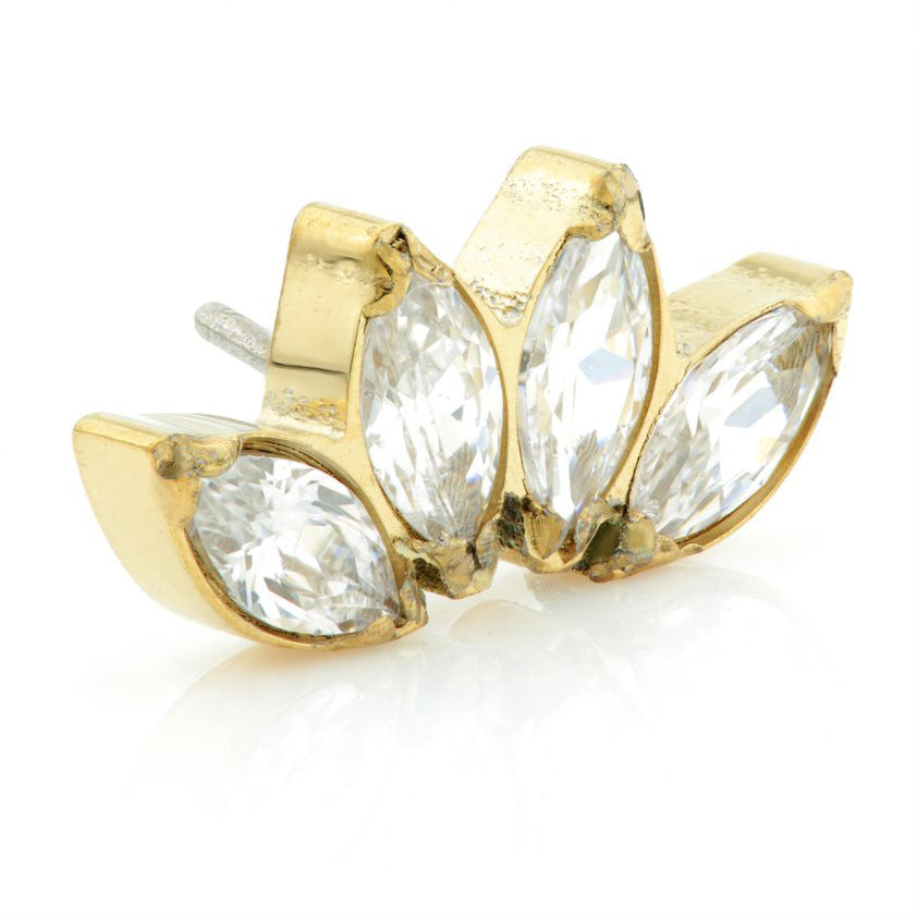 Zircon Gold Ti Threadless Marquise Gem Cluster Attachment Size: 11mm Gem Size: 4mm x 2mm (x4) Crystal Gems Medical Grade Titanium 6Al-4VEli ASTM:F-136