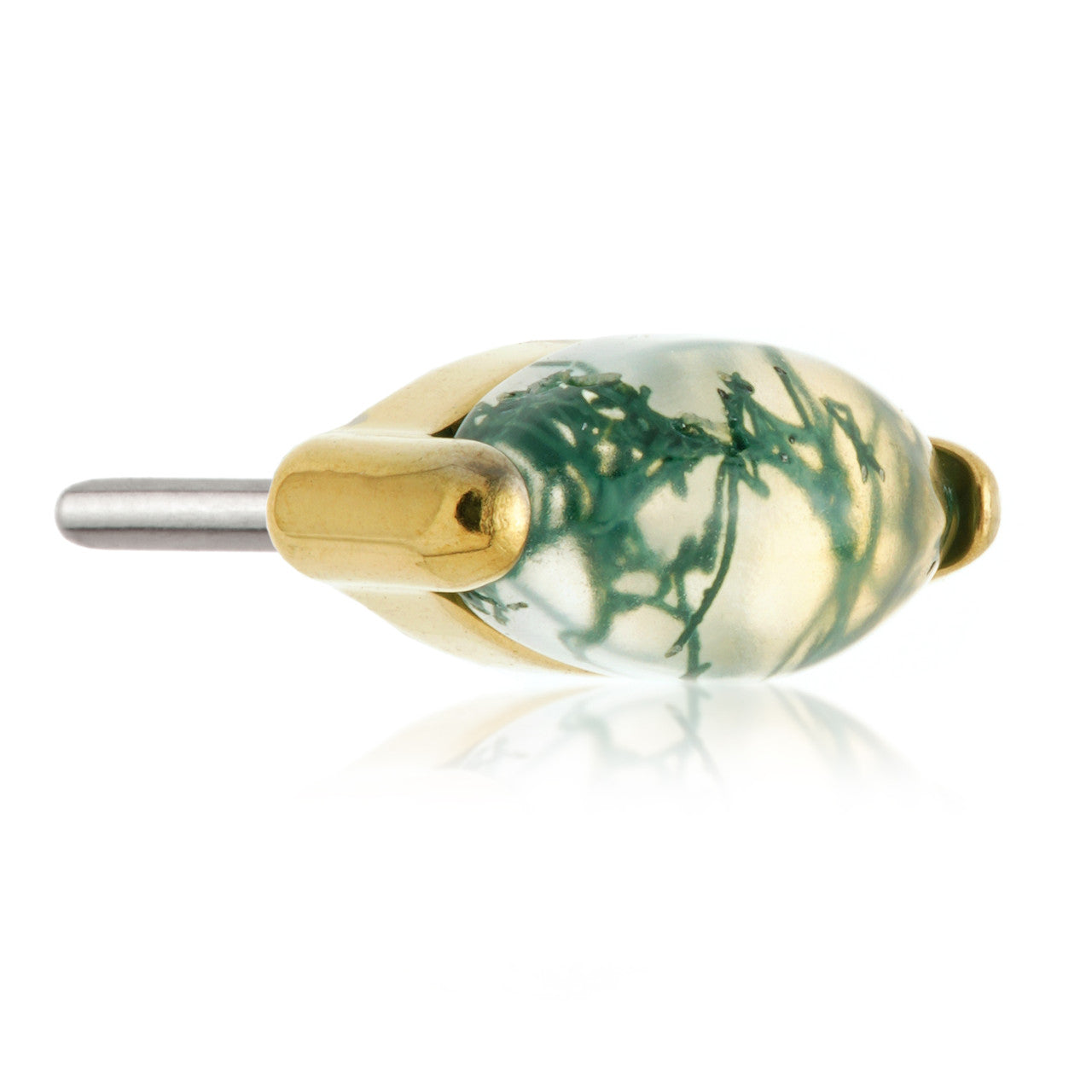 Zircon Gold Ti Threadless Mini Moss Agate Marquise Attachment Attachment Size: 4*2mmStone Colour: Moss Agate Medical Grade Titanium 6Al-4VEli ASTM:F-136