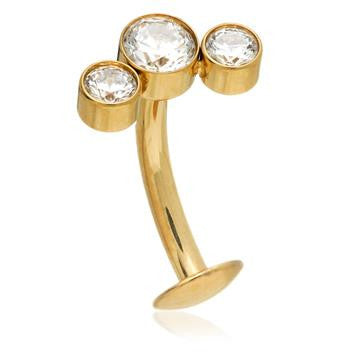 Zircon Gold Ti Threadless Triple Gem Floating Navel Bar