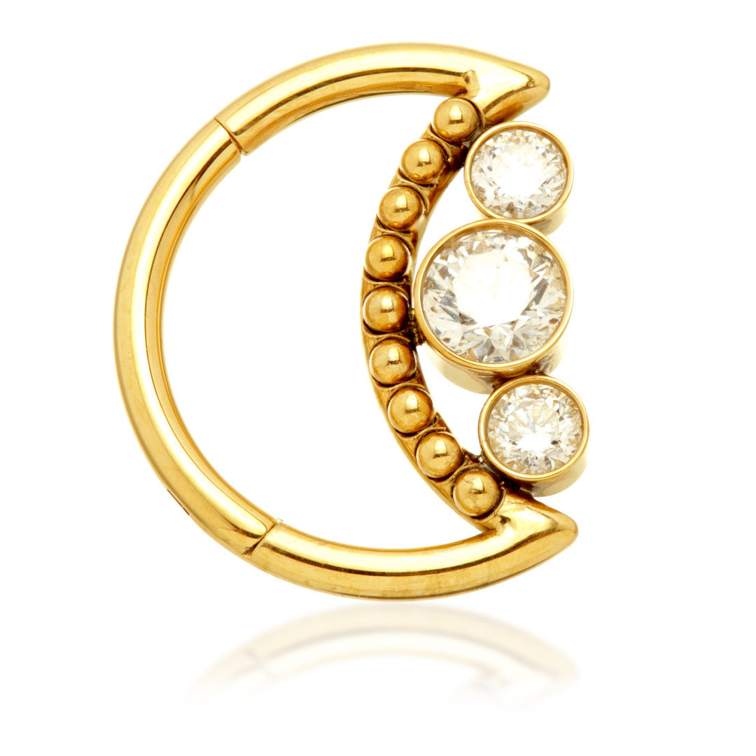 Zircon Gold Ti Triple Jewelled Moon Shaped Hinge Ring