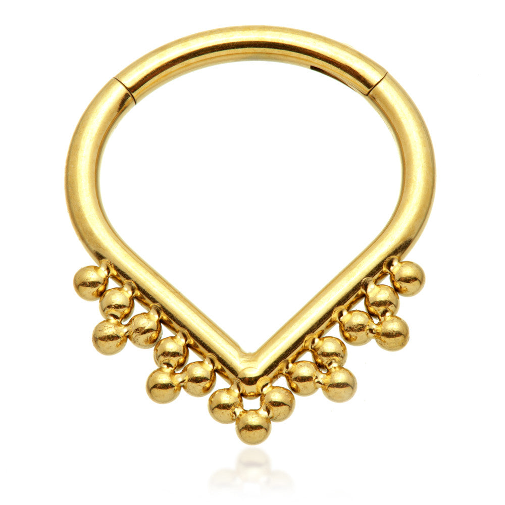 Zircon Gold Ti Wishbone Tribal Bead Cluster Hinged Ring