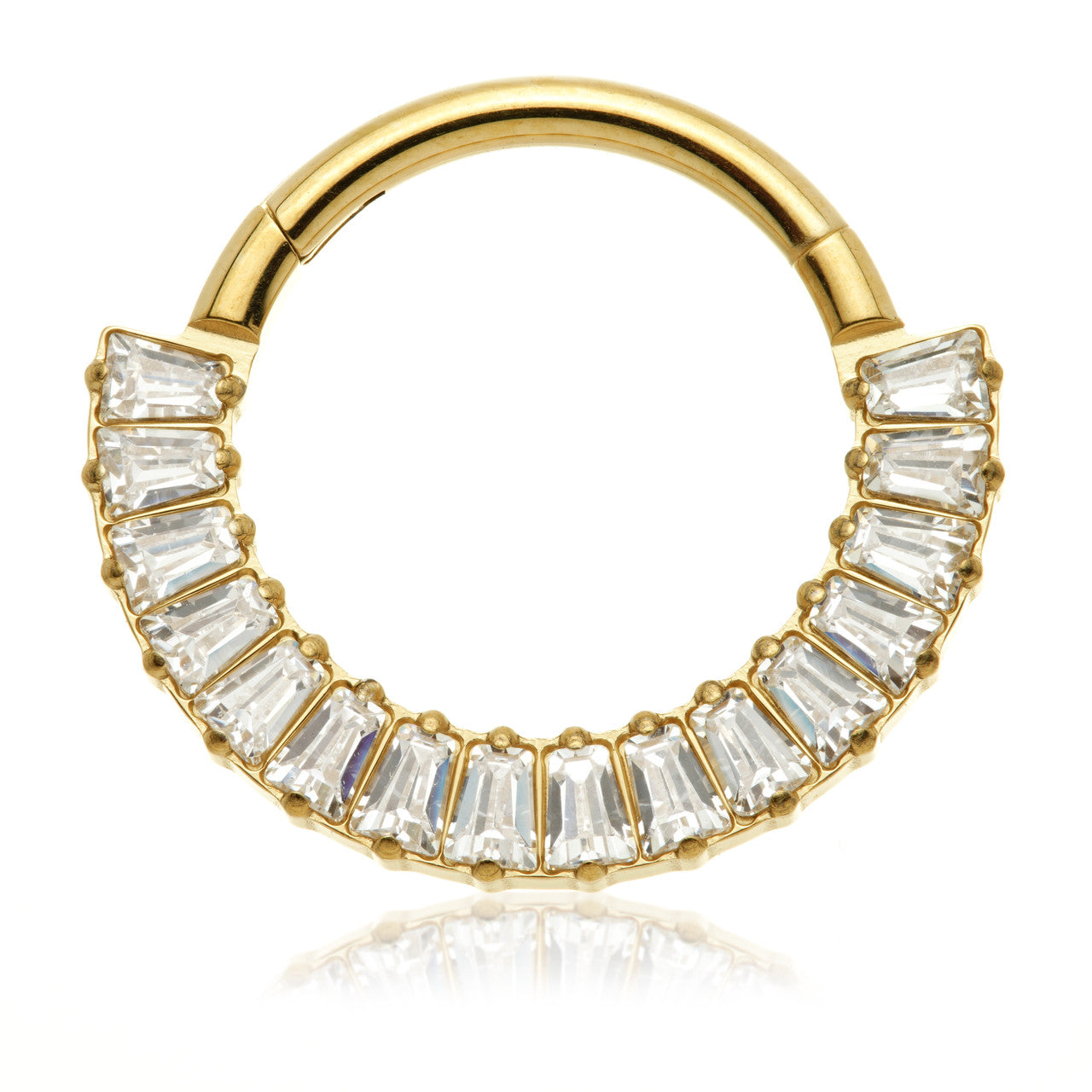 Zircon Gold Titanium Forward Facing Half Pave Baguette Gem Hinged Ring Gauge: 1.2mm Size: 8MM/10mm Medical Grade Titanium 6Al-4VEli ASTM:F-136