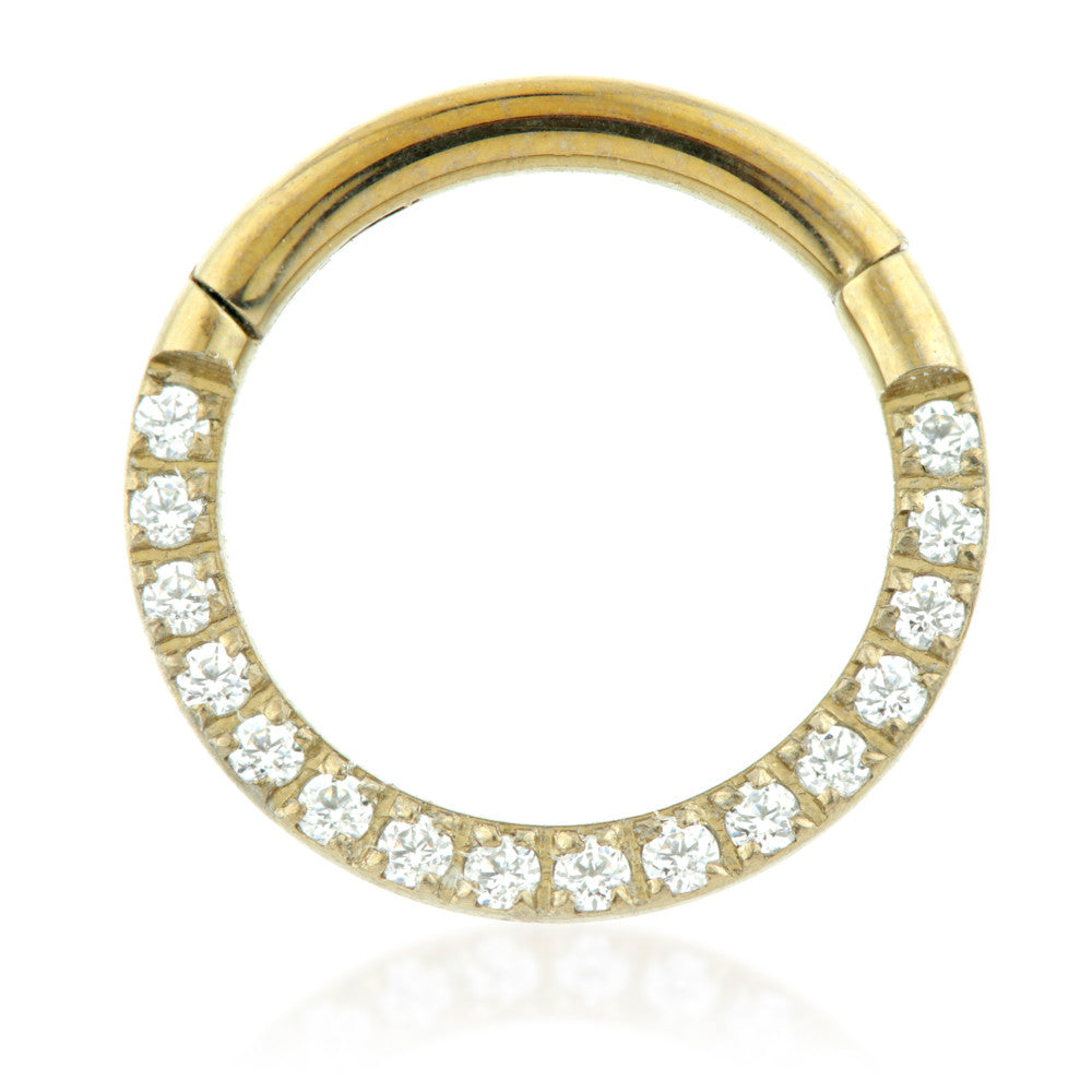 Zircon Gold Titanium Front Pave Gems Hinged Micro Ring