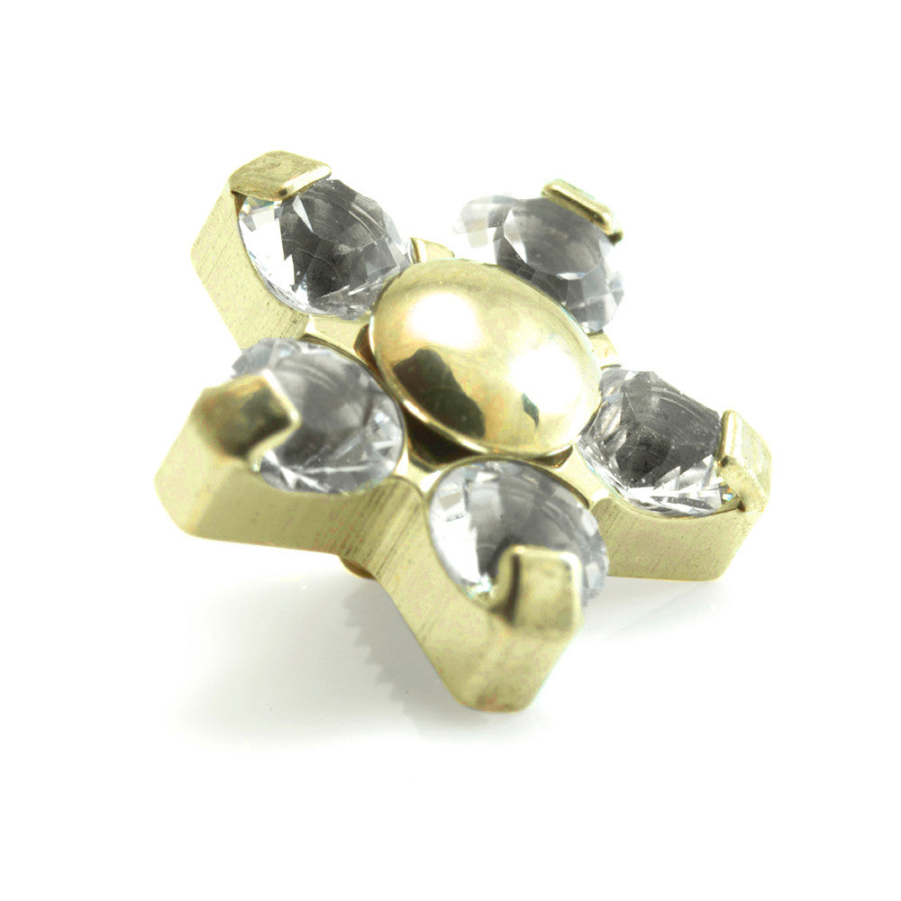 Gold PVD Titanium Flower with Gems - 5 Petal Flower Gauge: 1.6mm with 1.2mm thread Crystal