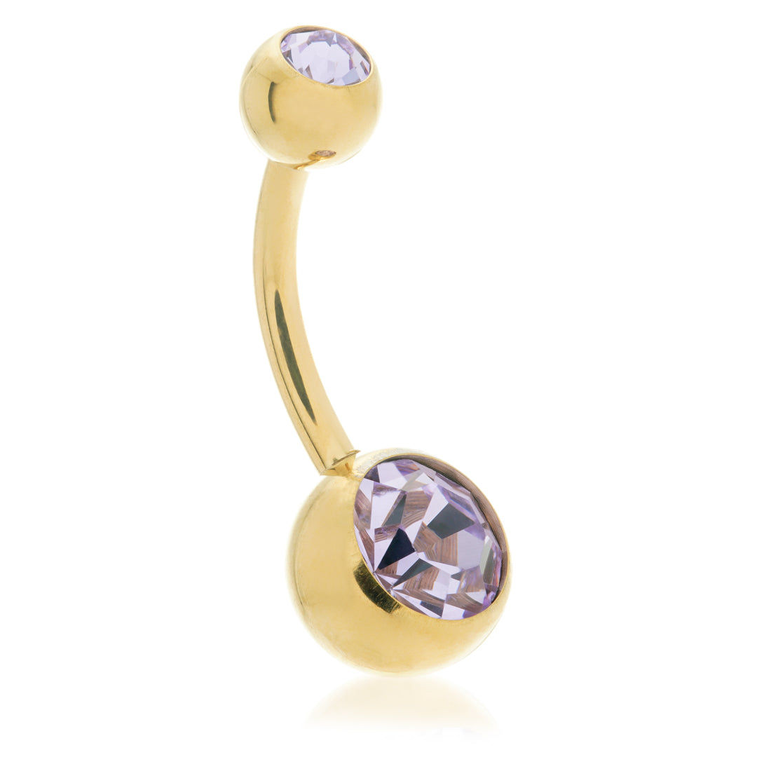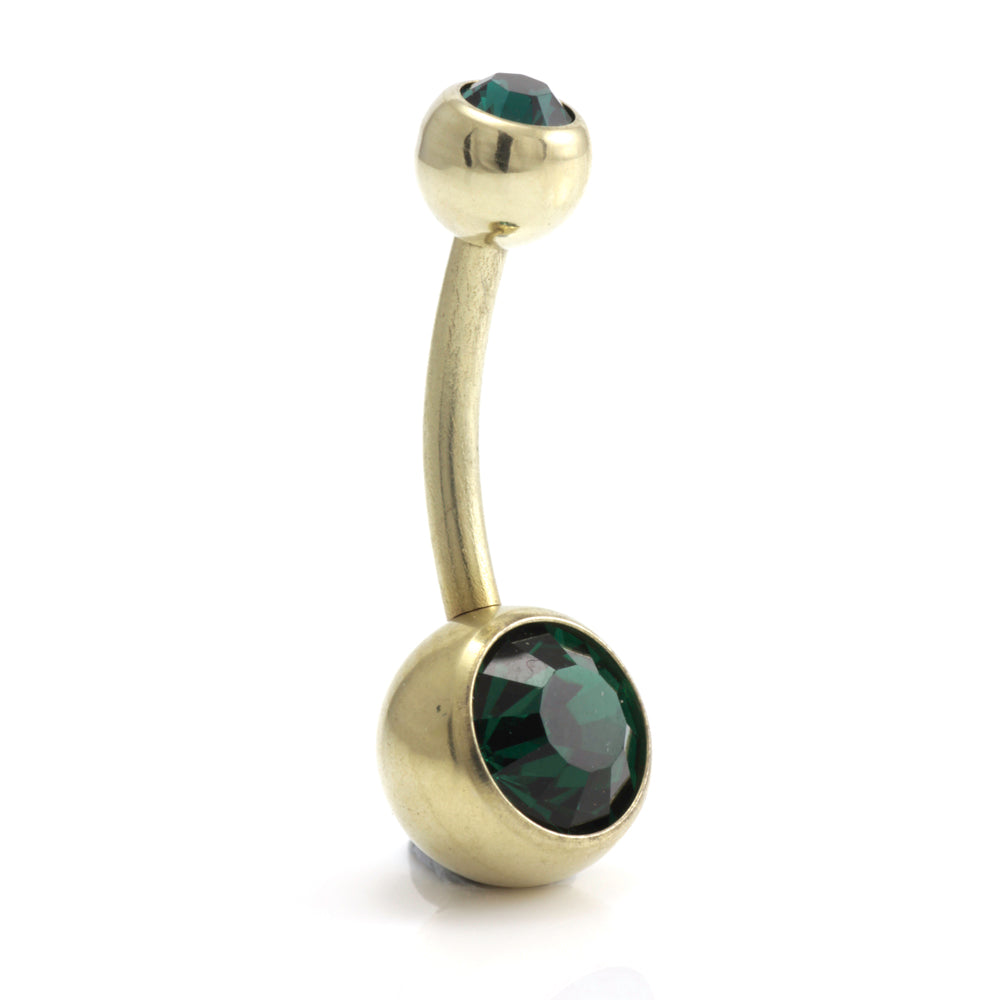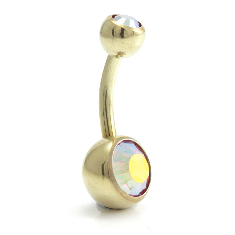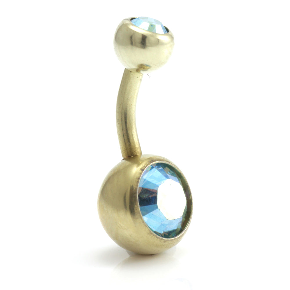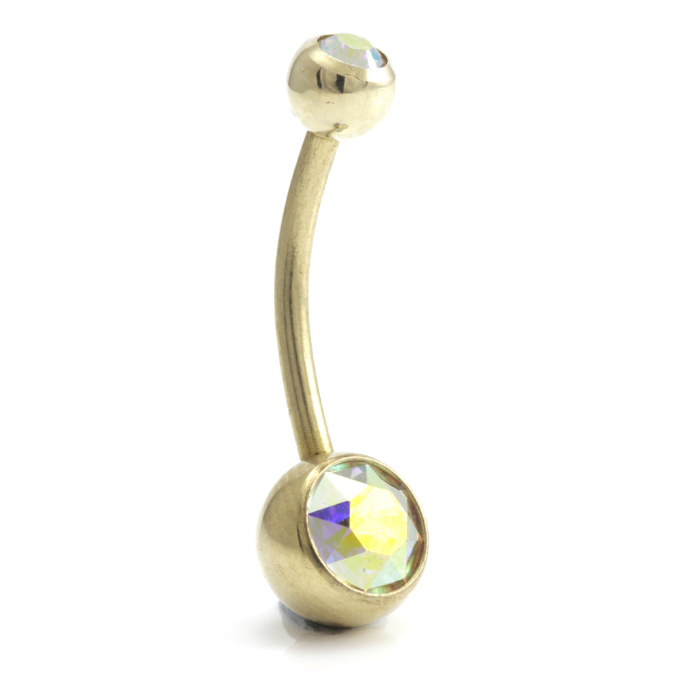Zircon PVD Gold Ti Double Jewelled Navel Bar