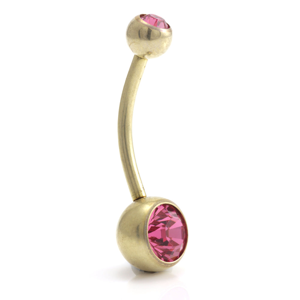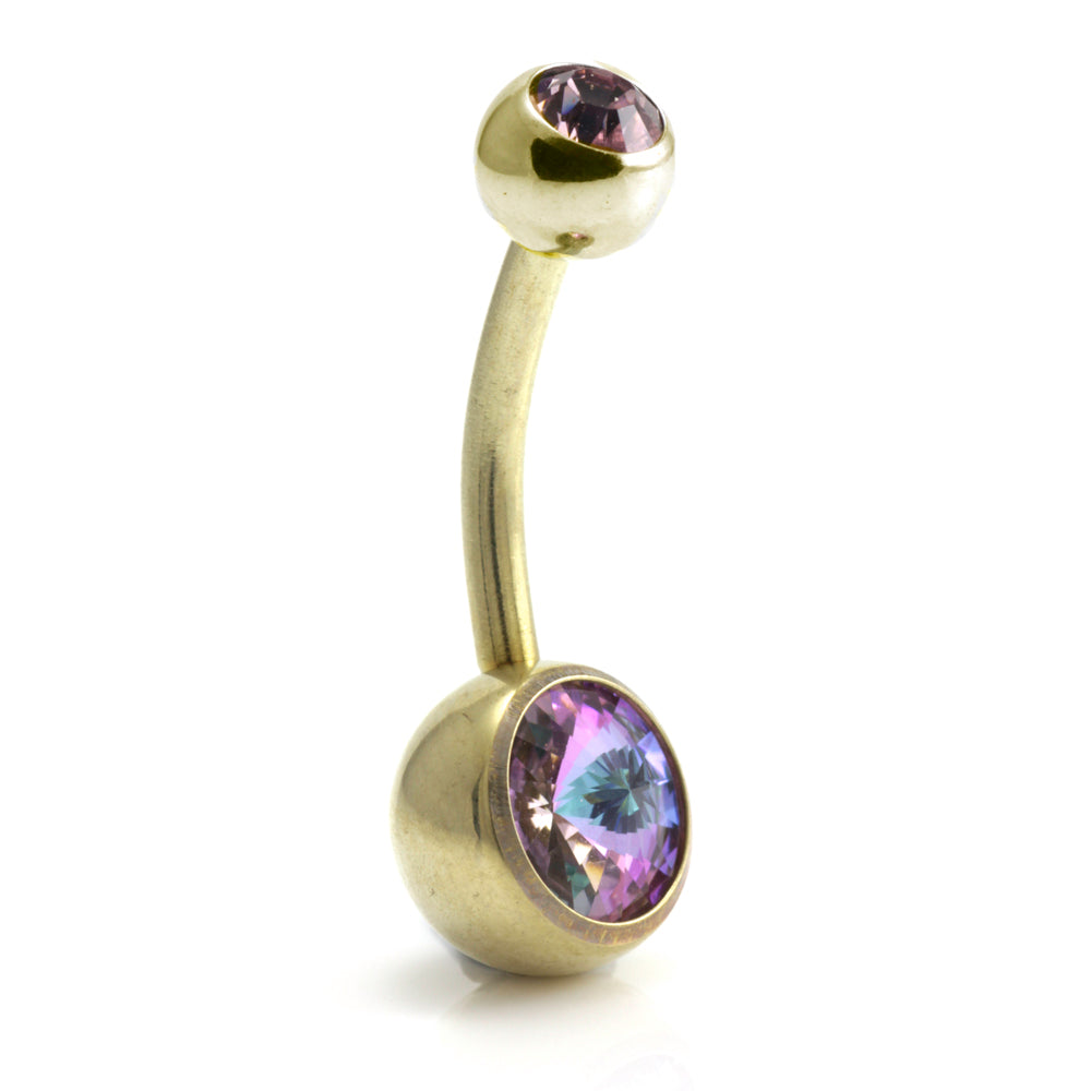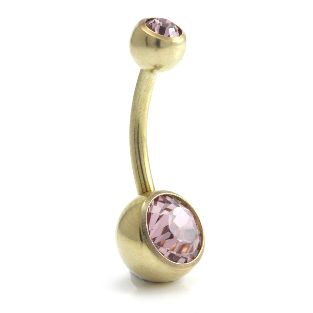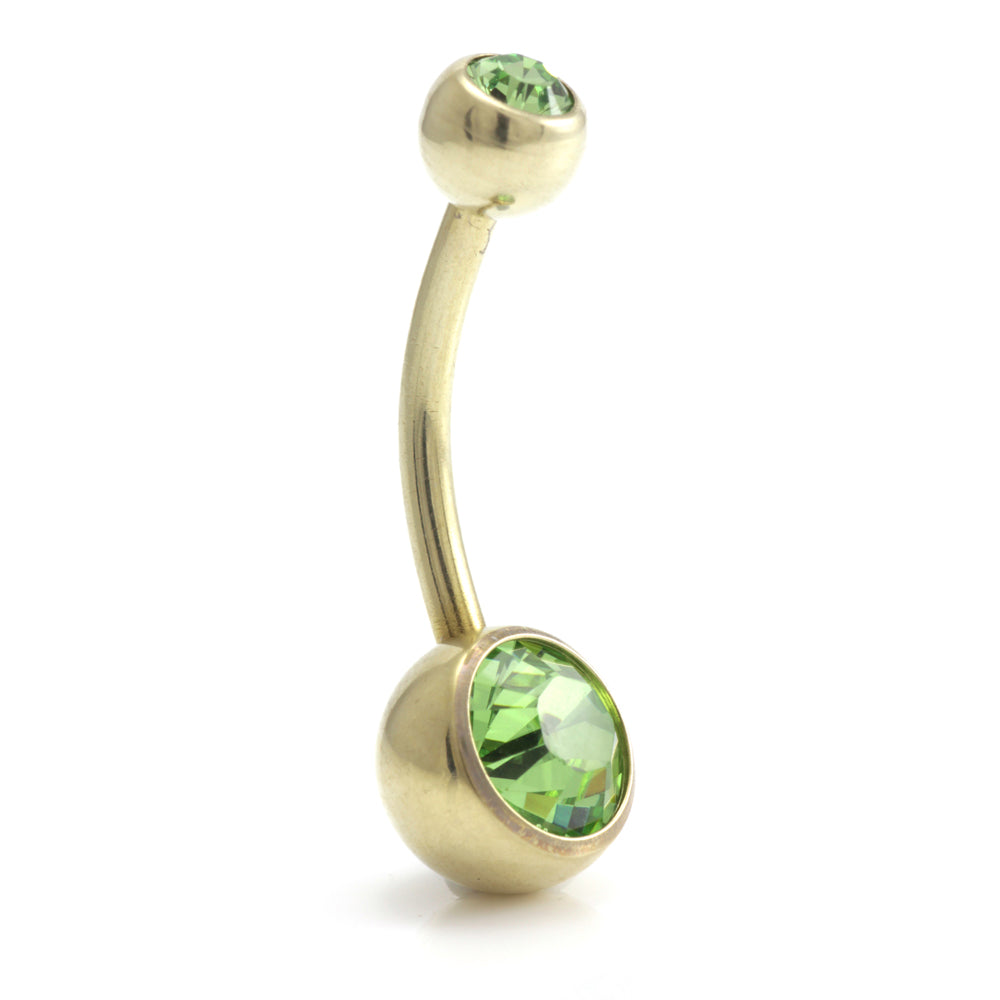 Zircon PVD Gold Ti Double Jewelled Navel Bar