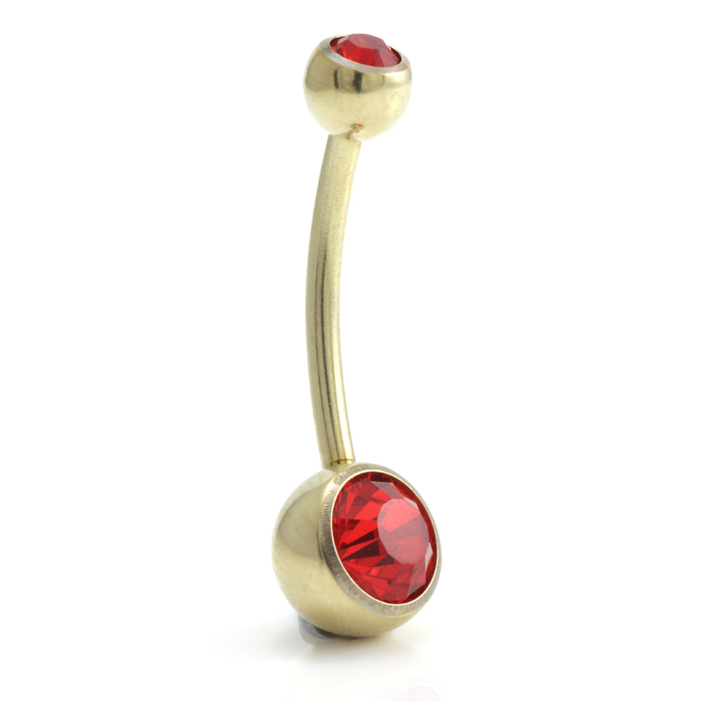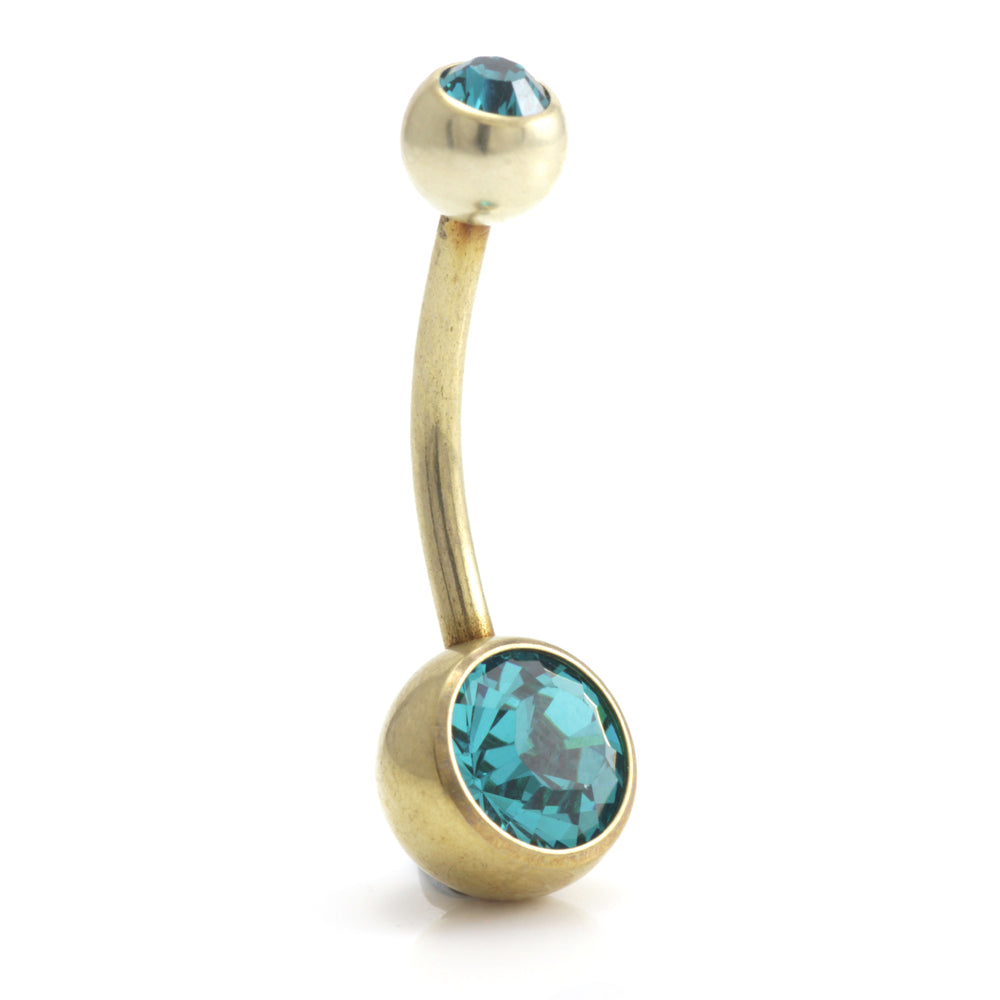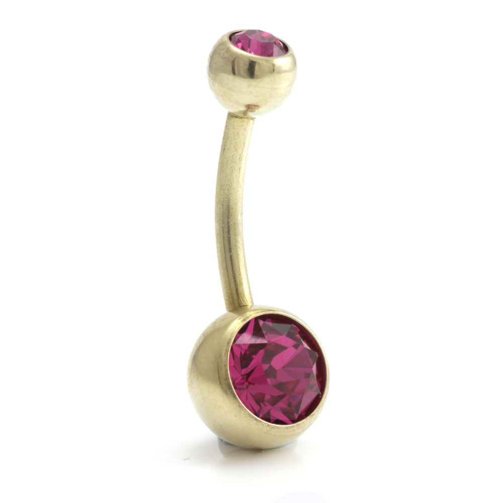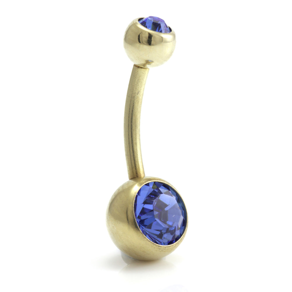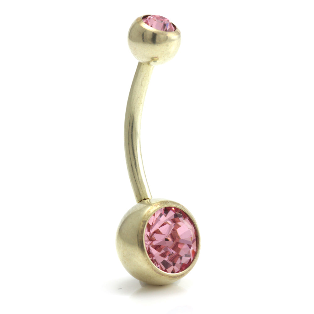 Zircon PVD Gold Ti Double Jewelled Navel Bar