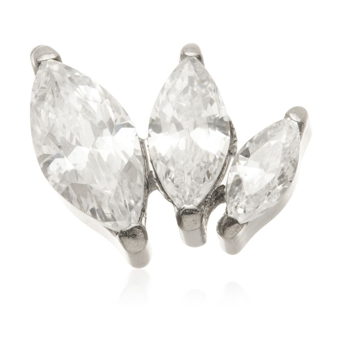 Titanium Internal Graduated Jewel Marquise Attachment Gauge: 1.2mm (0.9mm thread) Attachment Size: 7mm Gem Colour: CR CZ Gem Stones Medical Grade Titanium 6Al-4VEli ASTM:F-136
