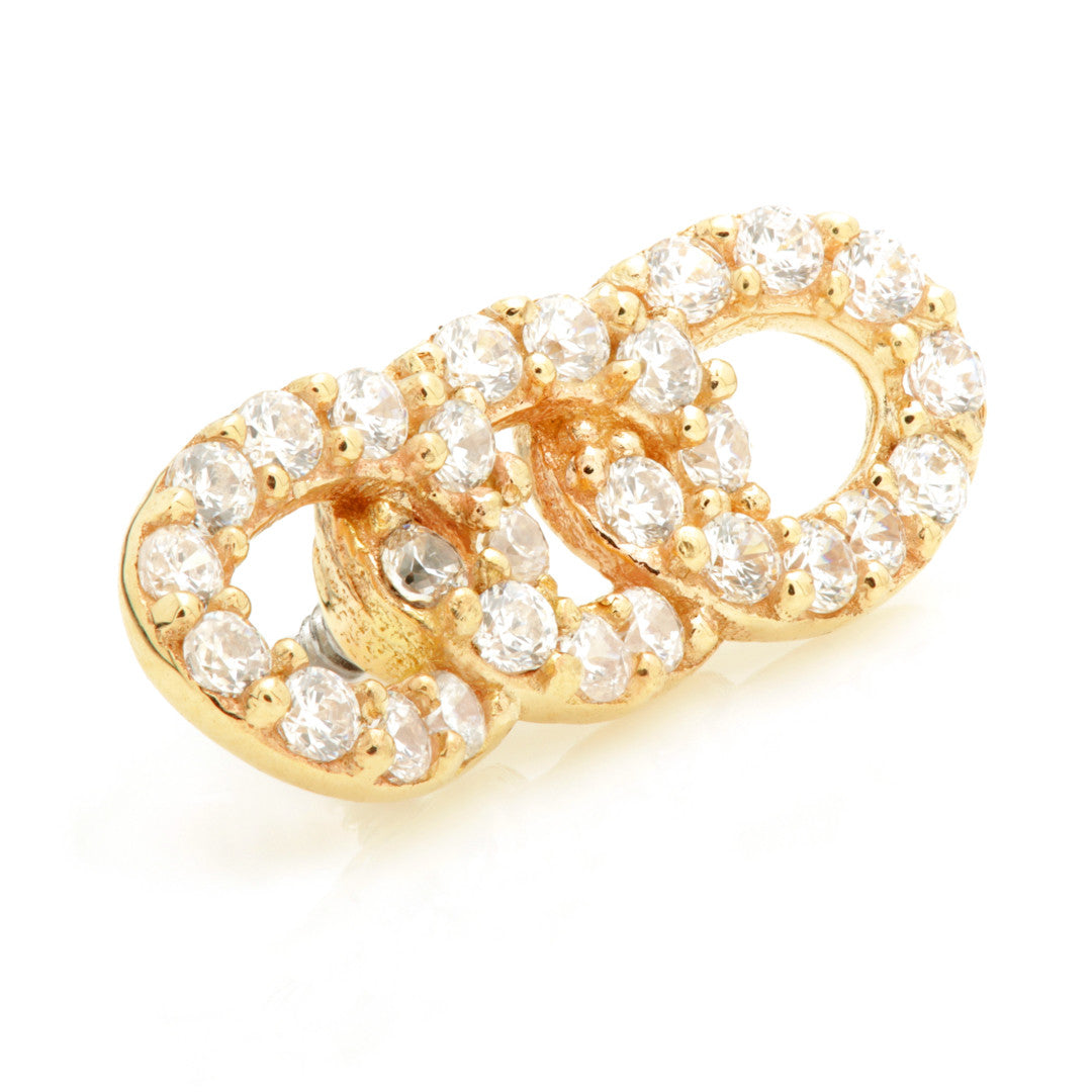 <p>TISH LYON® 14ct Internal Gold Pave Triple Chain Links Attachment</p> <p>Gauge: 1.2mm (0.9mm thread) Size: 11mm x 4.5mm Gold Colour: Yellow Gem Colour: CR CZ Gem Stones</p> <p>Packaged in small grey presentation box/card Suitable for initial piercing</p>