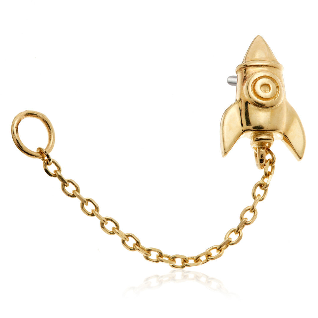 TISH LYON® Rocket with Chain - 14ct Gold Threadless Attachment Attachment Size: 7mm Chain Length: 20mm Gold Colour: Y Packaged in small presentation box Suitable for initial piercing
