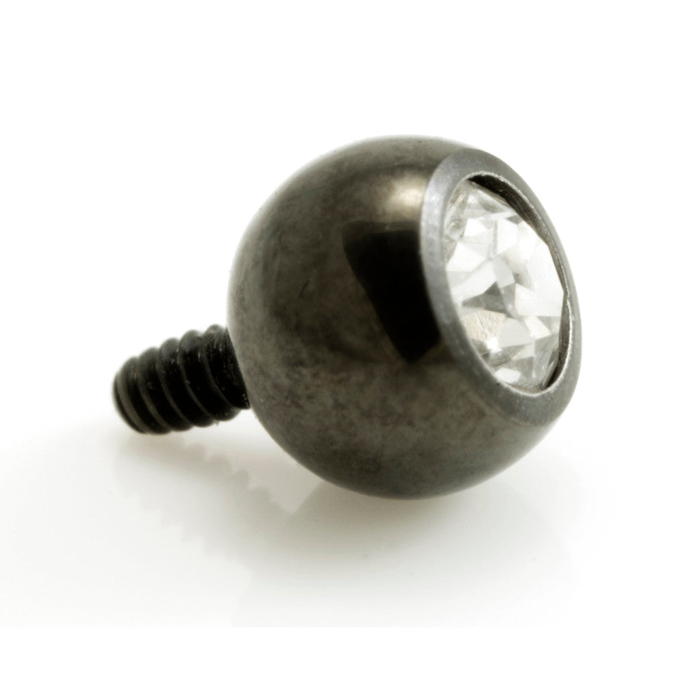 Internal 1.2mm Thread Titanium Evil Black PVD Gem Ball Fits onto 1.6mm internal thread open dermal anchor base, discount dermal anchor base, Q-internal jewellery or flat surface bars) Gem: Crystal Gauge: 1.6mm Ball Sizes: 3mm, 4mm, 5mm