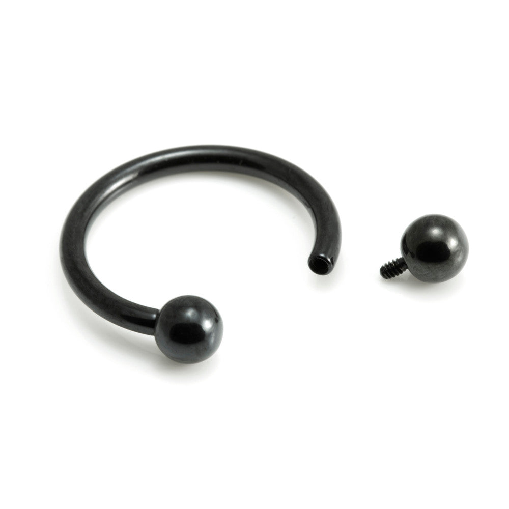PVD Evil Black on Titanium Circular Barbells - Blackest Black Gauge: 1.6mm Size: 8mm, 10mm, 12mm Ball Size: 4mm