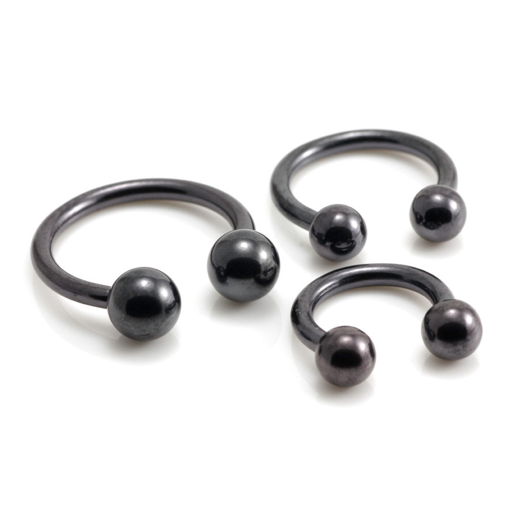 PVD Black on Titanium Circular Barbell Gauge: 1.6mm Sizes: 8mm, 10mm, 12mm Ball Size: 5mm