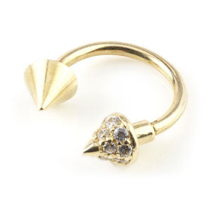 TISH LYON® - 9ct Gold Micro Circular Barbell with Cone and Gem Encrusted Cone Yellow Gold Size: 1.2mm x 8mm Crystal Gem Size: 6mm / Ball: 3mm For: Cartilage, Tragus, Inverted Tragus, Rook, etc Packaged in small grey presentation box