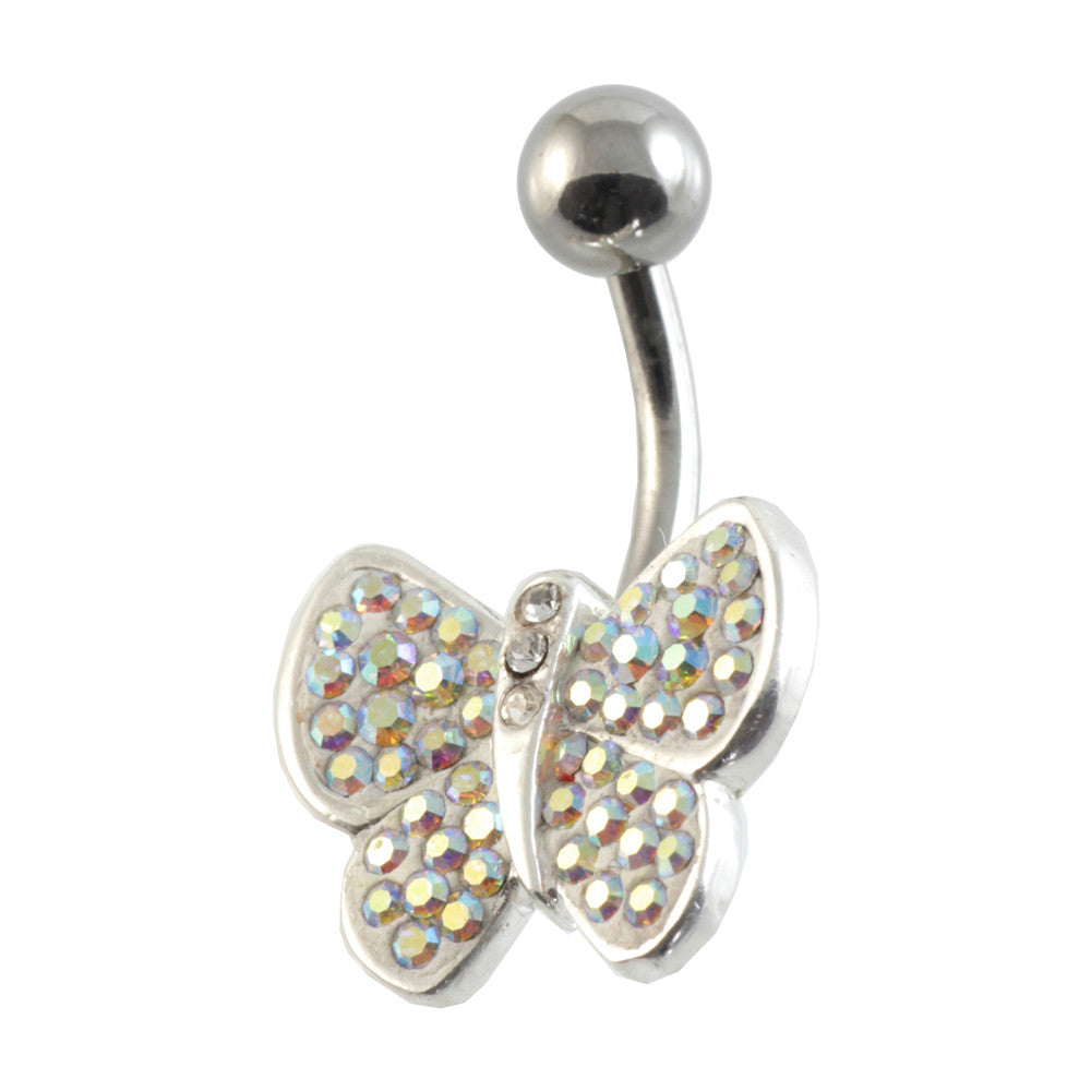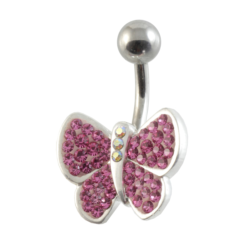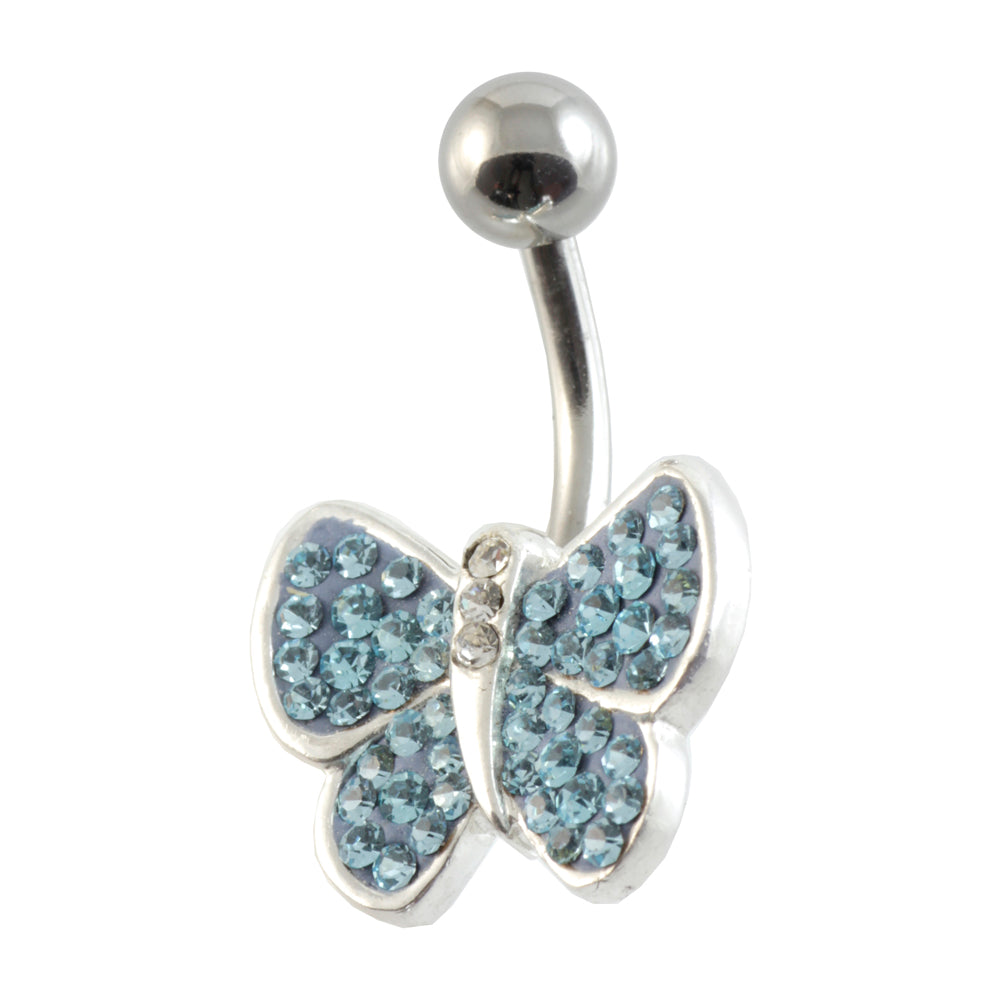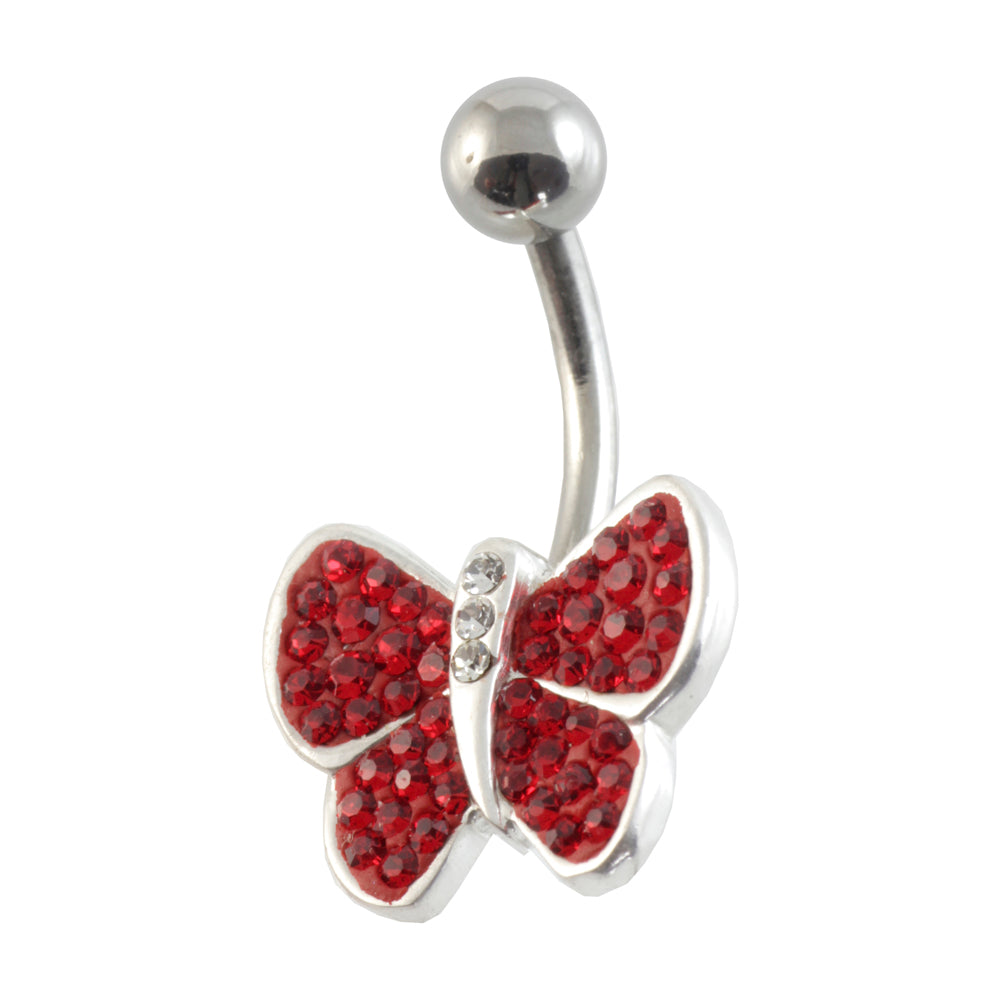Gem Belly Bar - 925 Silver Setting with 316L Steel Bar Gauge: 1.6mm Sizes: 8mm, 10mm, 12mm Gem Colours: Red / AB Crystal / Aqua / Pink