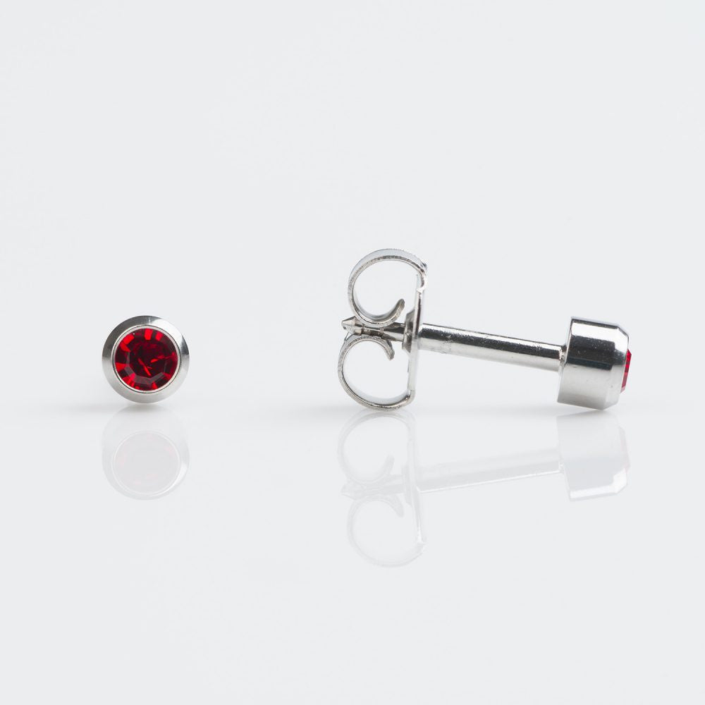 Regular Size Bezel Set Ruby Euro White Steel Piercing Studs - 12 per pack July Birthstones - 12 crystal Euro White Steel All Sterile and EC compliant Studex Code: DCNR207W