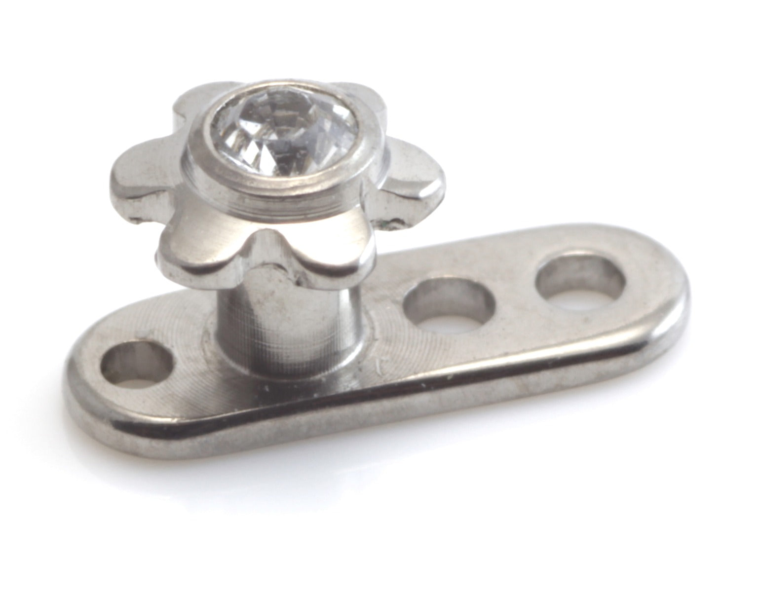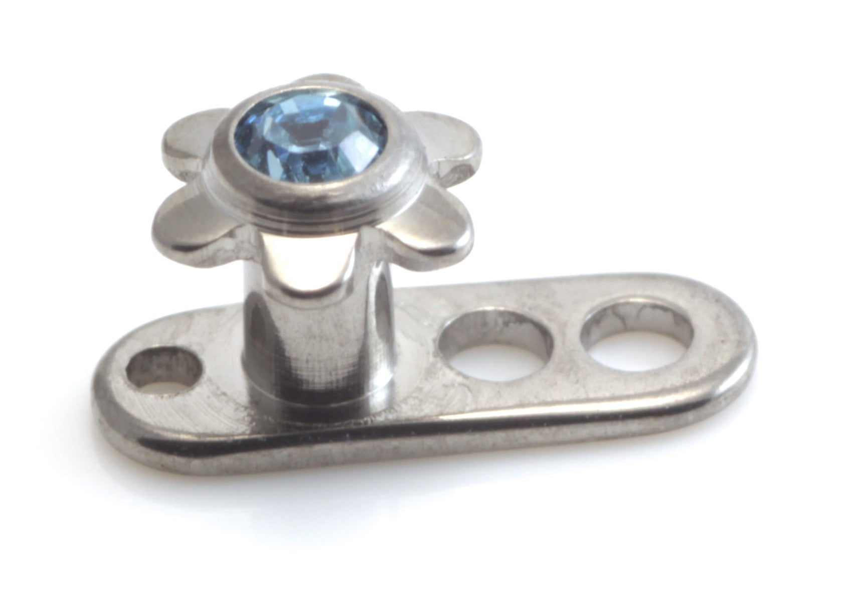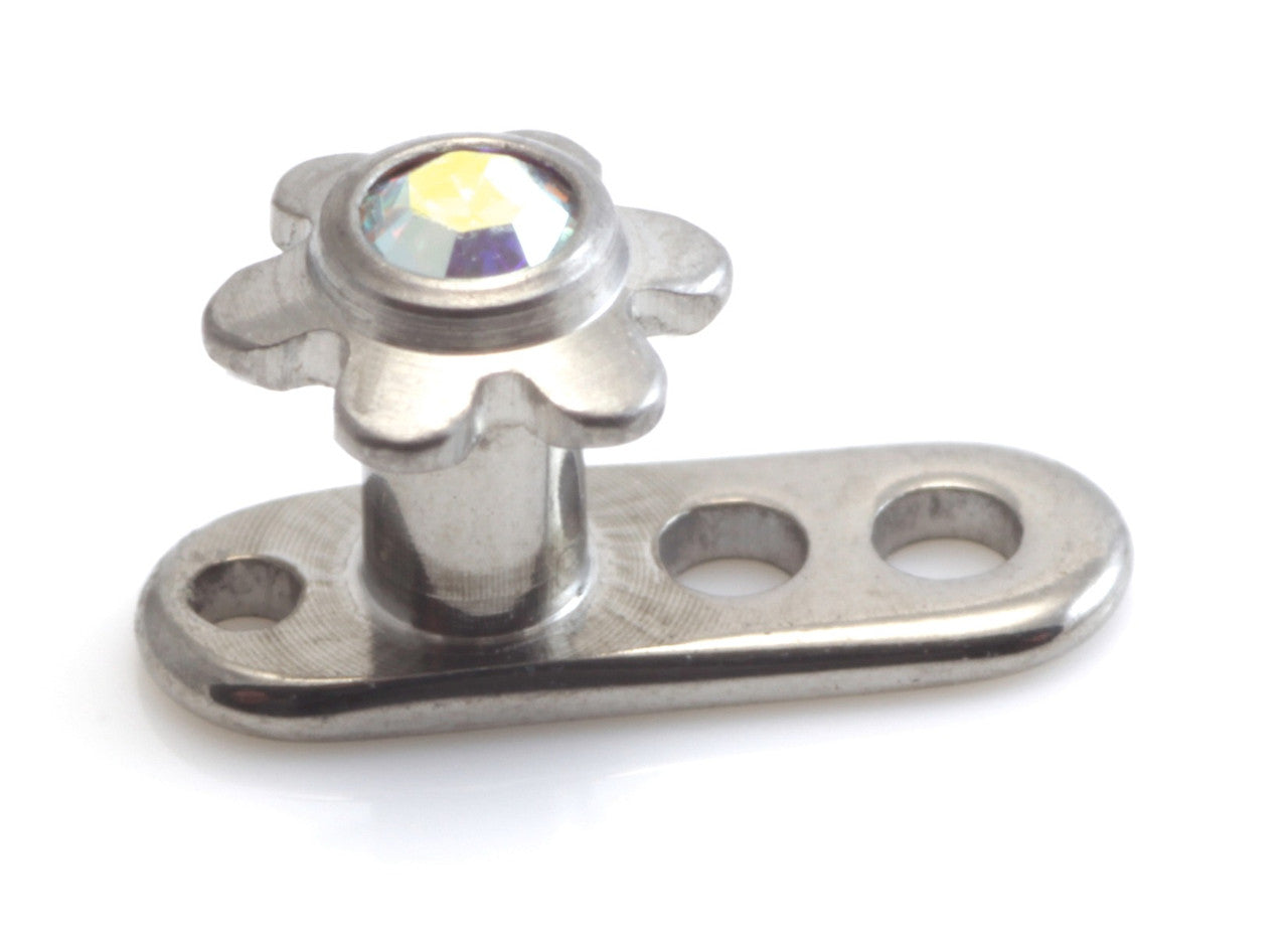 Titanium Implant Dermal Anchor (internal thread) with Ti Gem Flower Dermal Anchor Height: 2mm or 2.5mm Gauge: 1.6mm Disk Size: 3.5mm Gem Colours: Crystal, AB, Aqua, Rose, Lt Siam