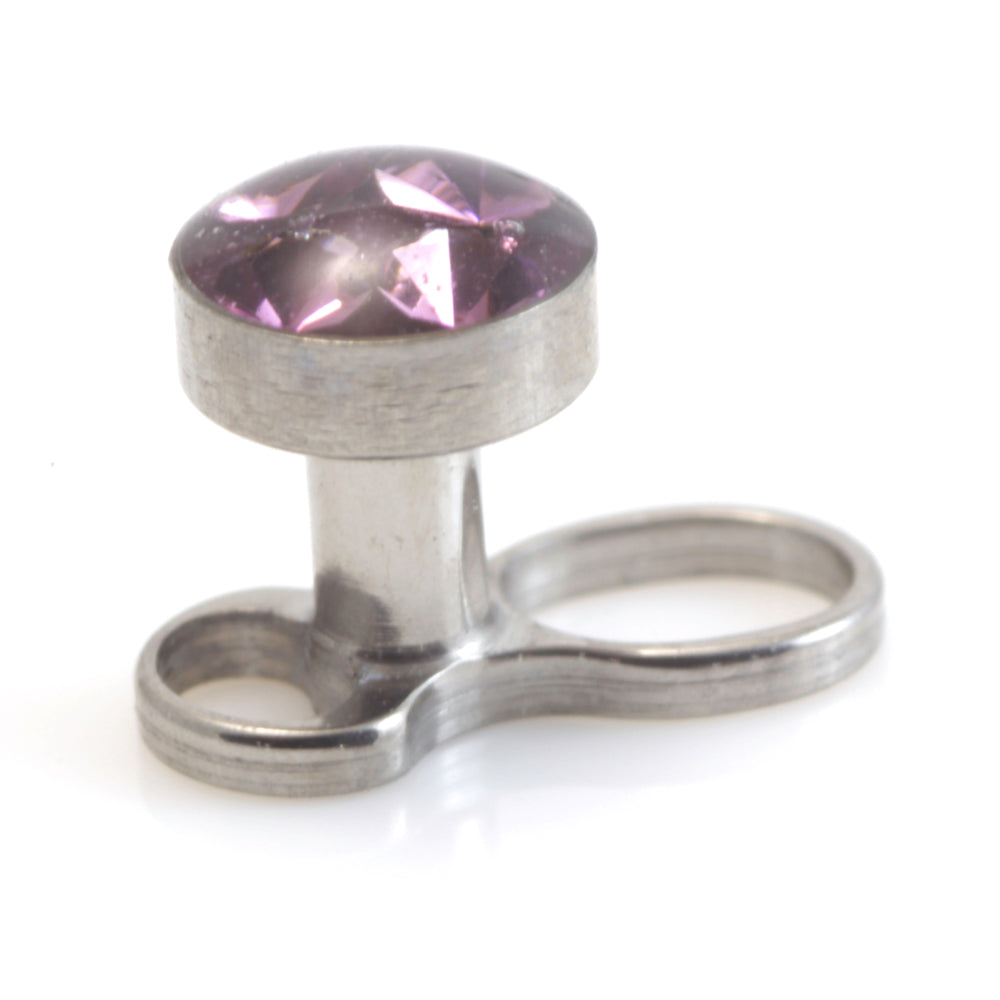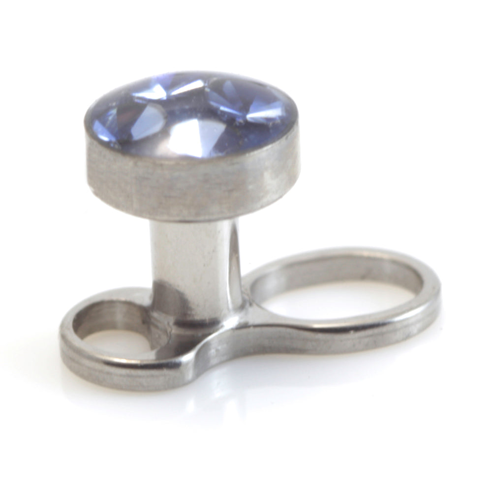 Titanium Micro Dermal Anchor with Multi Gem Disk (internal thread) Gauge: 1.2mm / Thread: 0.8mm Height: 1.5mm or 2mm Disk Size: 3mm or 4mm Gem Colours: Crystal / AB / Amethyst / Aqua / BZ / Fuchsia / Lt Rose / Lt Siam / Peridot / Sapphire