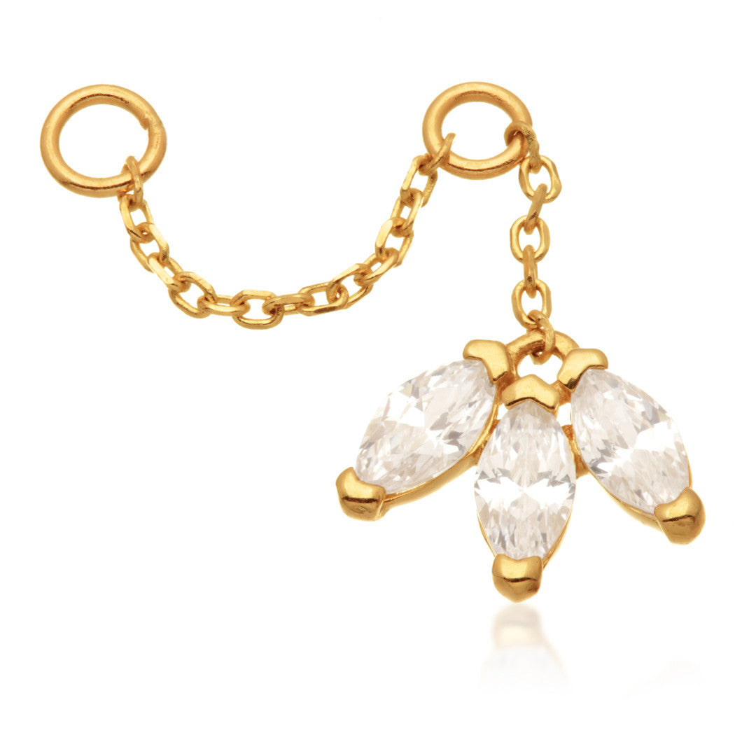 TISH LYON - 14ct Gold Chain with Marquise Attachment Gem Size Size: 4*2 x 3 Chain Length: 17mm O-ring Inner Diameter: 1.8mm Gold Colour: Yellow Gem Colour: & CR CZ Gemstones Packaged in small grey presentation box/card