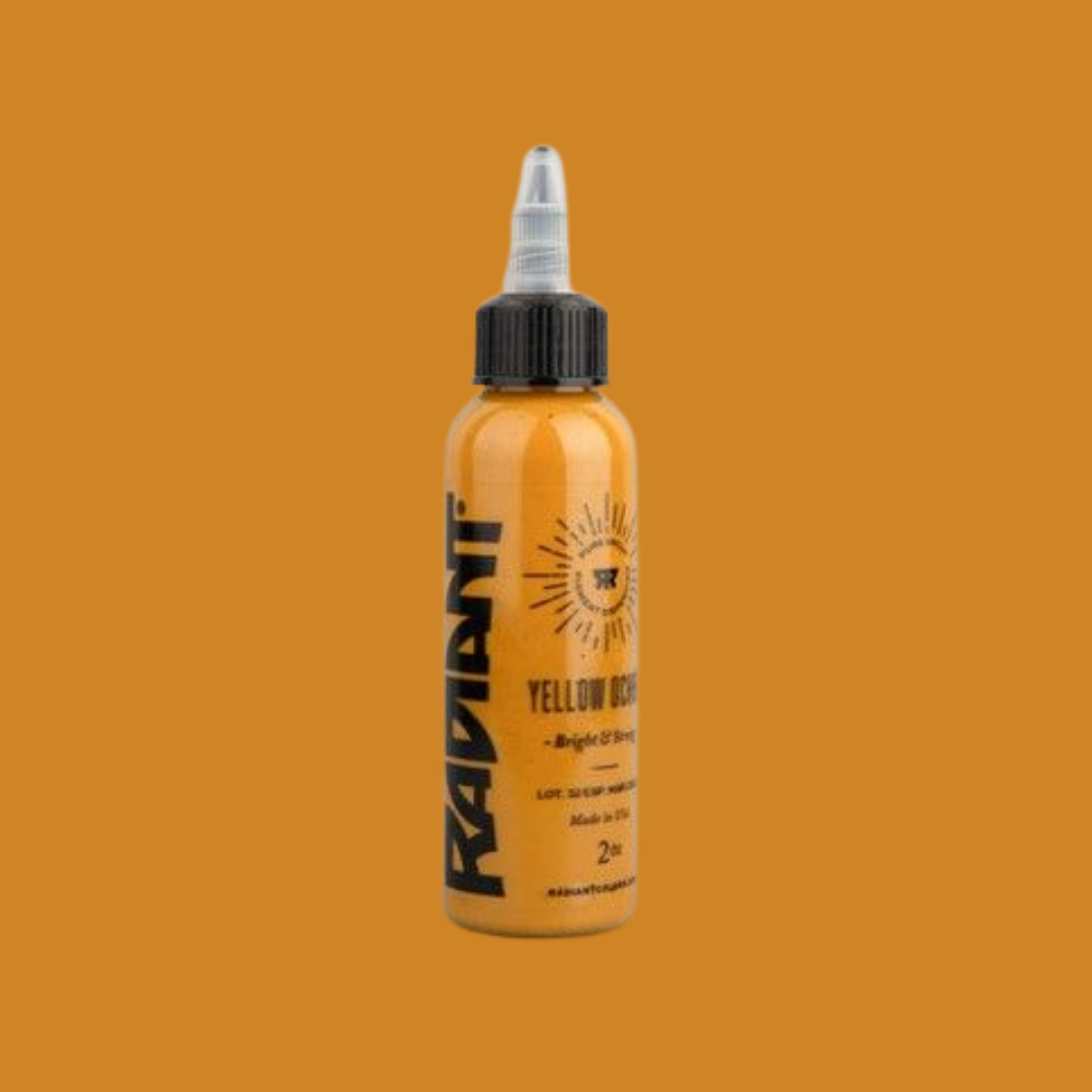 The mysterious and delightful ochre colour of rustiness. Single bottle of https://www.wholesalebodyjewellery.com/tattoo-supplies/product/tattoo-inks/radiant.html Radiant Ink . Available in 1oz. Sterilised, easy to apply, pure, uncut homogenised pigment.