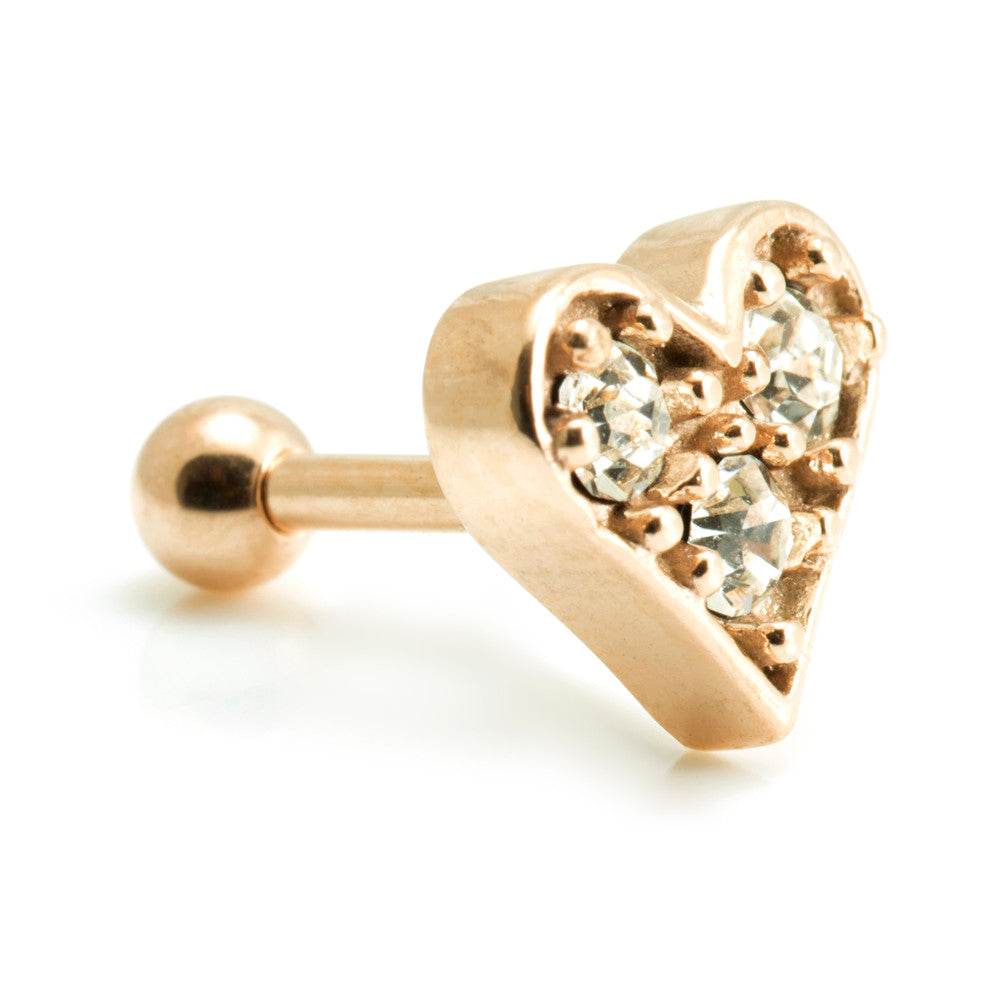 PVD Rose Gold Coating on Multi Gem Cast Steel Heart with rose gold steel microbar Size: 1.2mm x 6mm