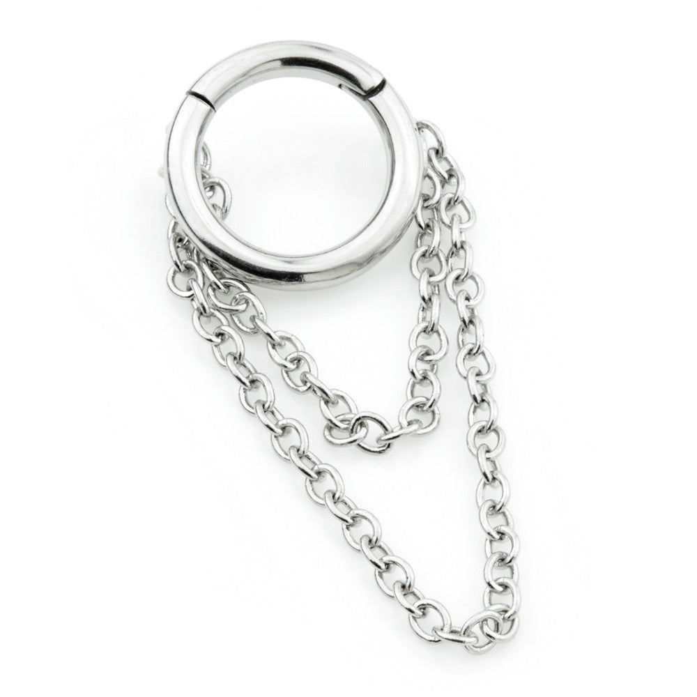 Steel Double Chain Hinge Segment Ring Hangs down the side of ear cartilage or from lobe Gauge: 1.2mm Sizes: 5mm, 6mm, 7mm, 8mm
