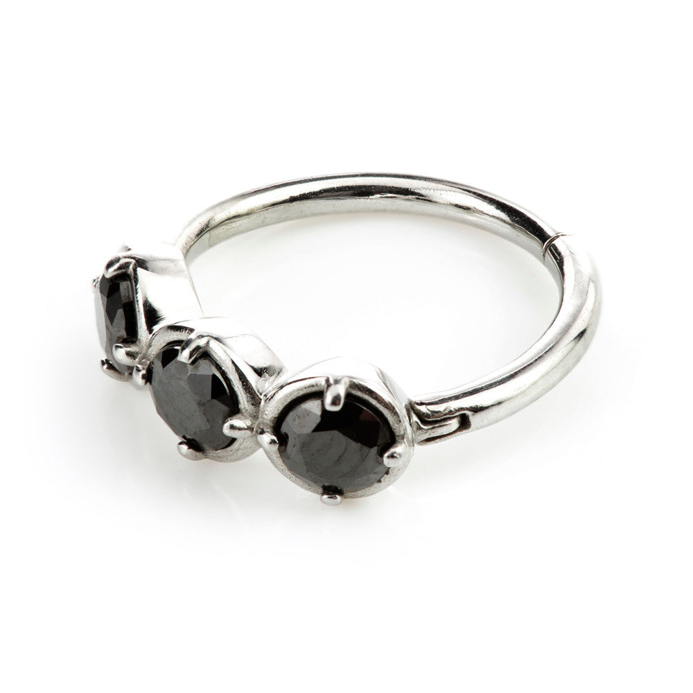 Steel Hinge Triple Gem Segment Ring Gauge: 1.2mm Sizes: 8mm or 10mm Gem Colour: Crystal or Jet