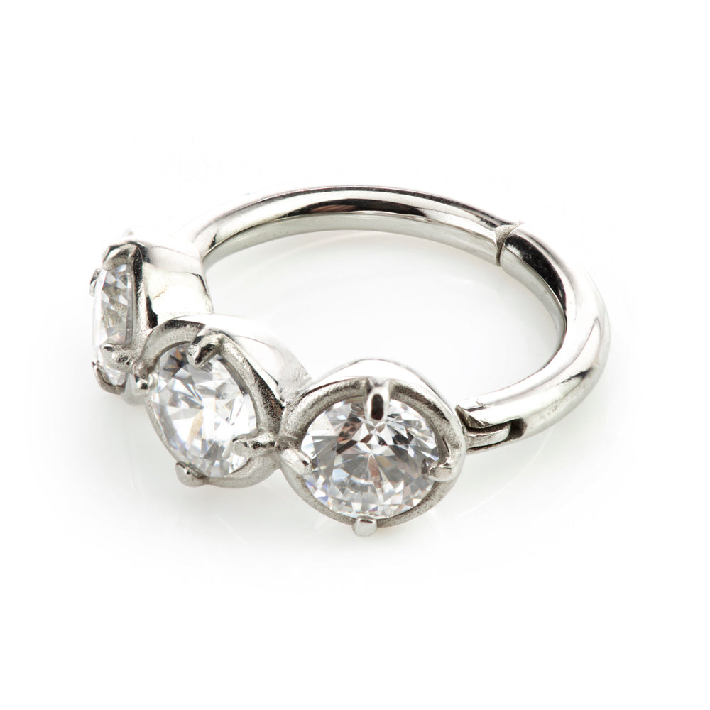 Steel Hinged Triple Gem Ring