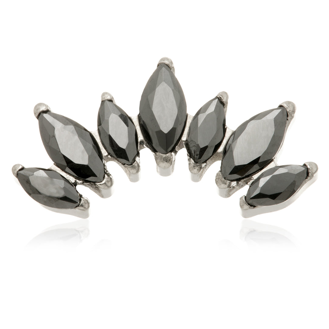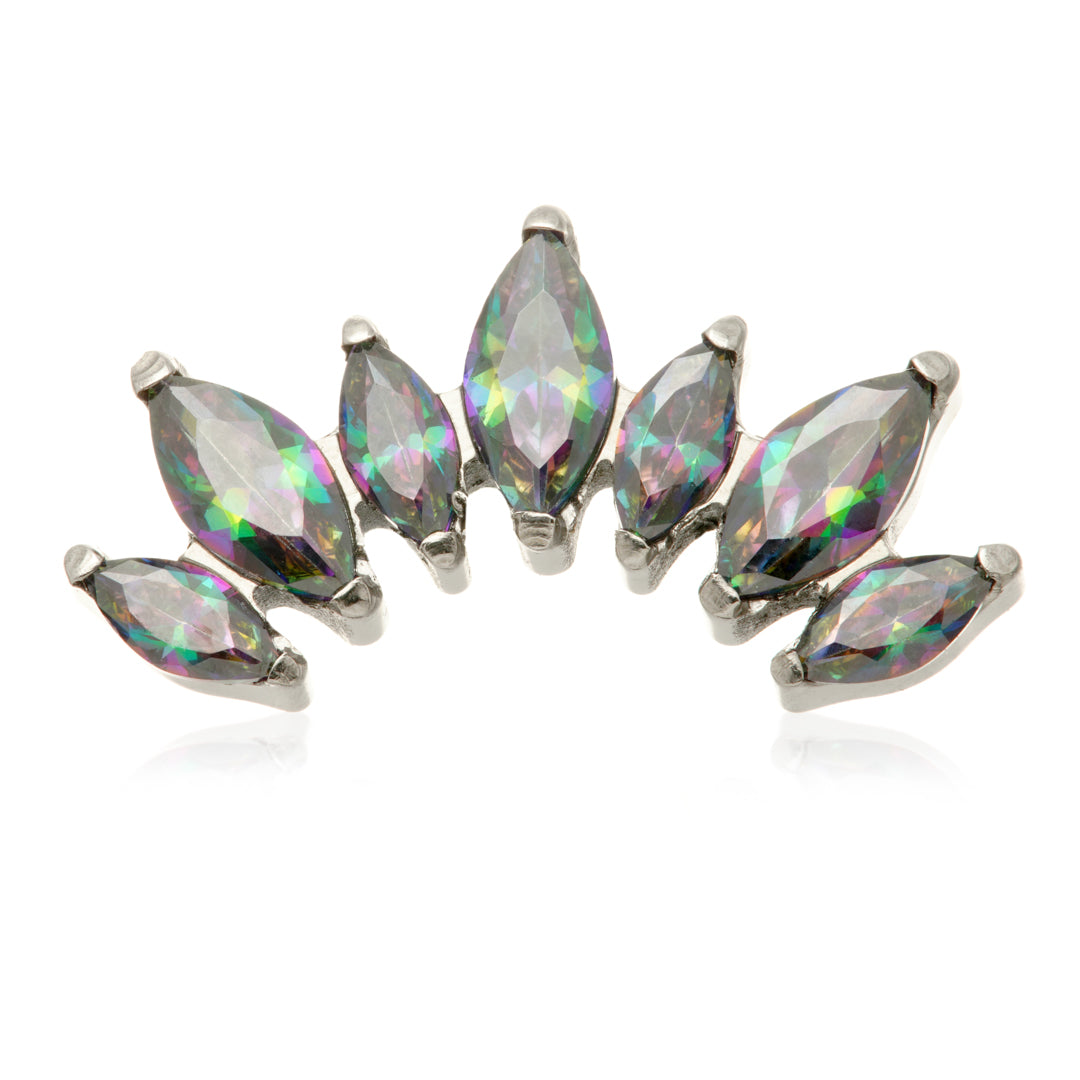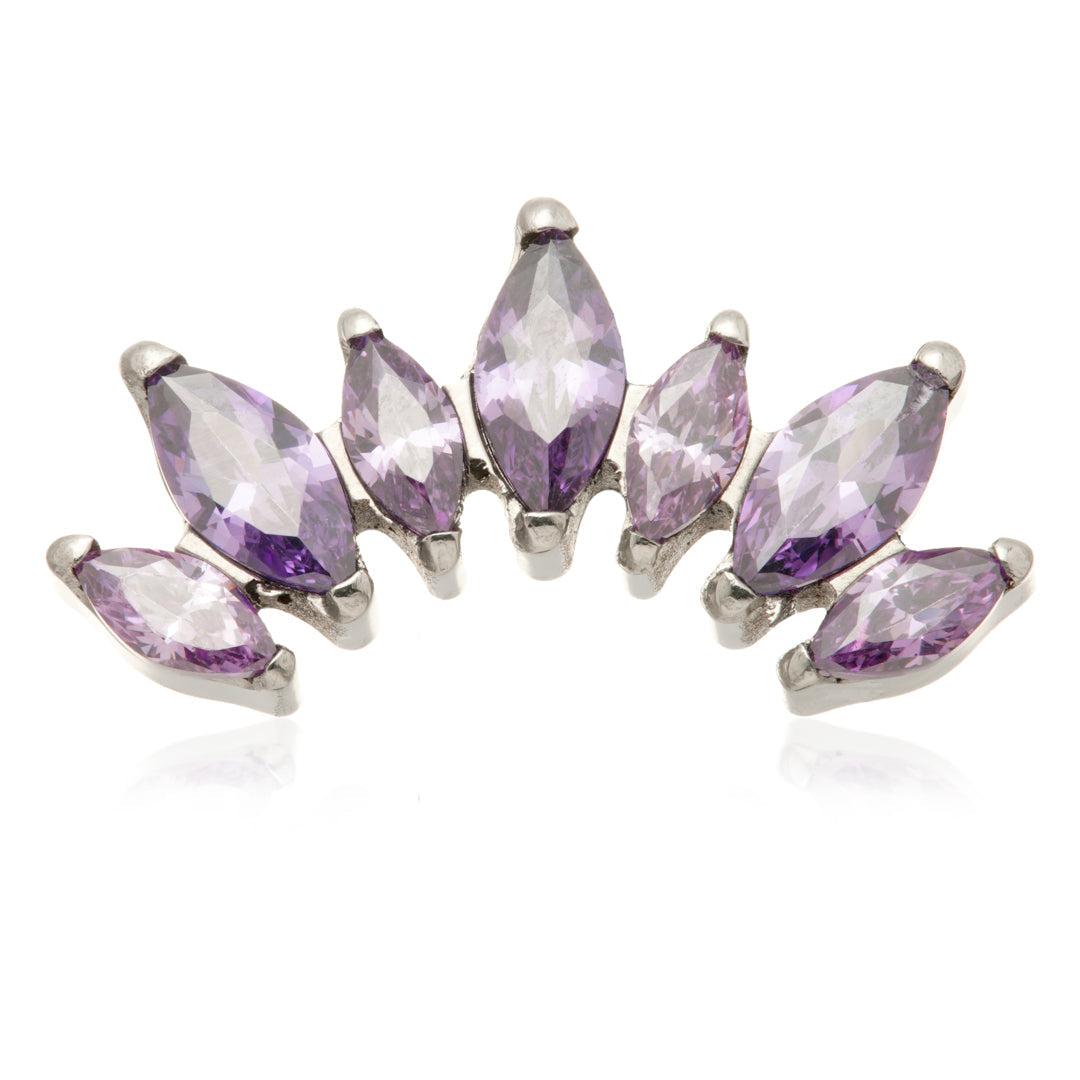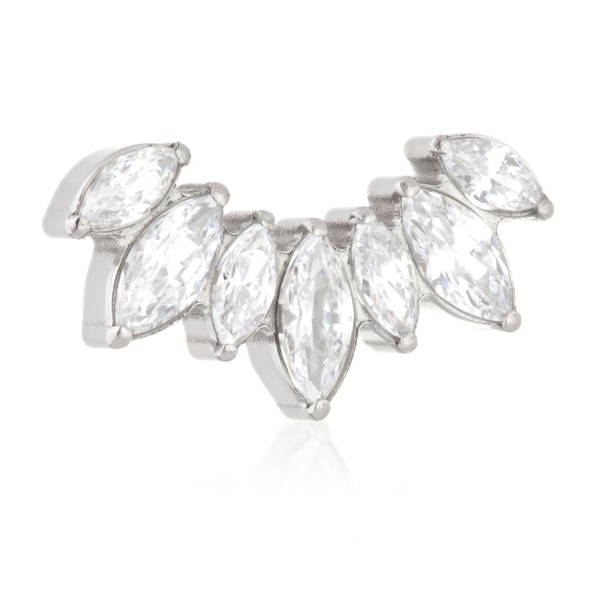 Titanium Internal Prong Jewelled Marquise Cluster Attachment Gauge: 1.2mm (0.9mm thread) Size: 6.5mm x 13mm Gem Colours: Crystal / Amethyst / Champagne / Emerald / Garnet / Jet / Light Rose / Vitrail Medium CZ Gem Stones Medical Grade Titanium 6Al-4VEli ASTM:F-136