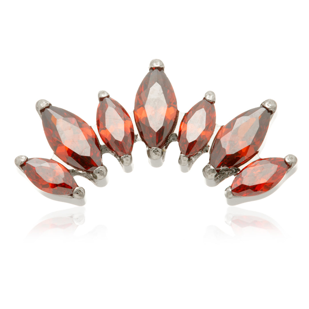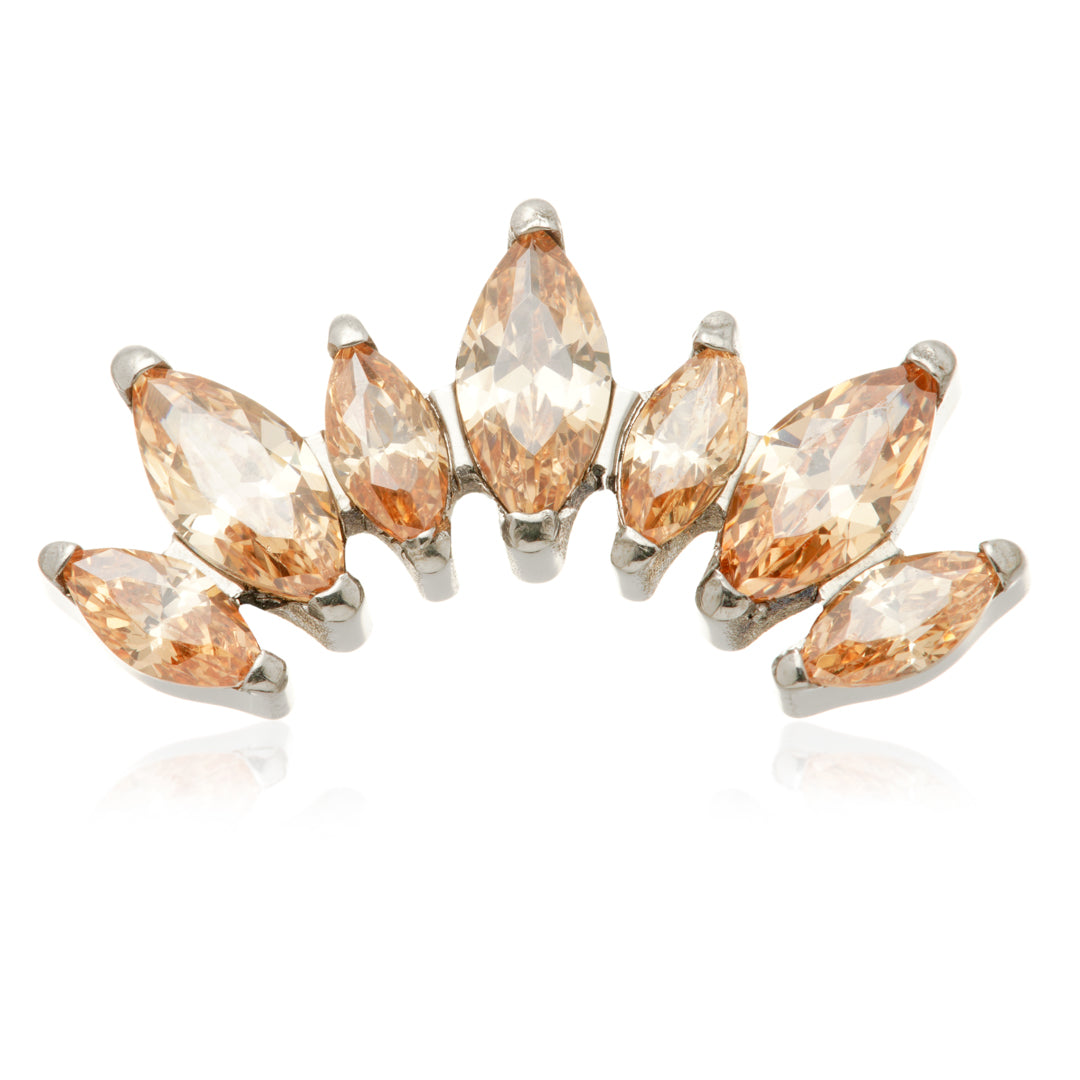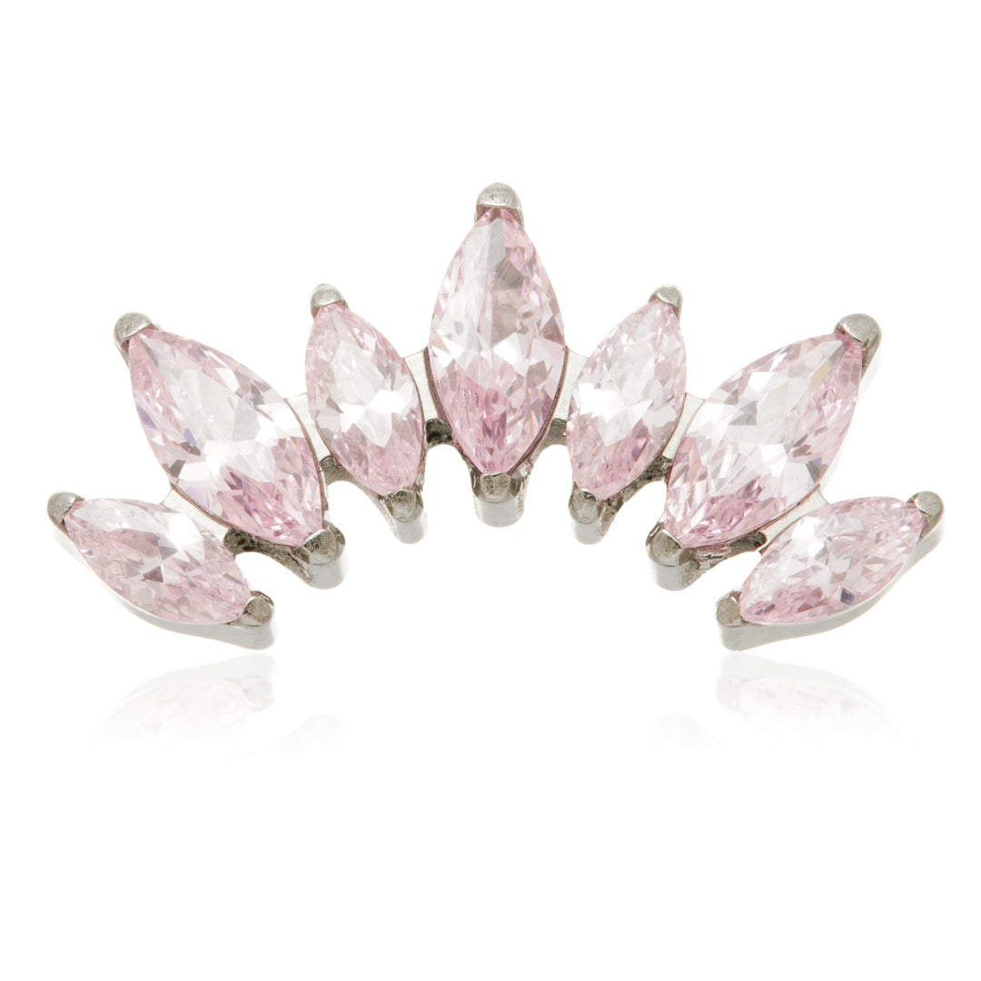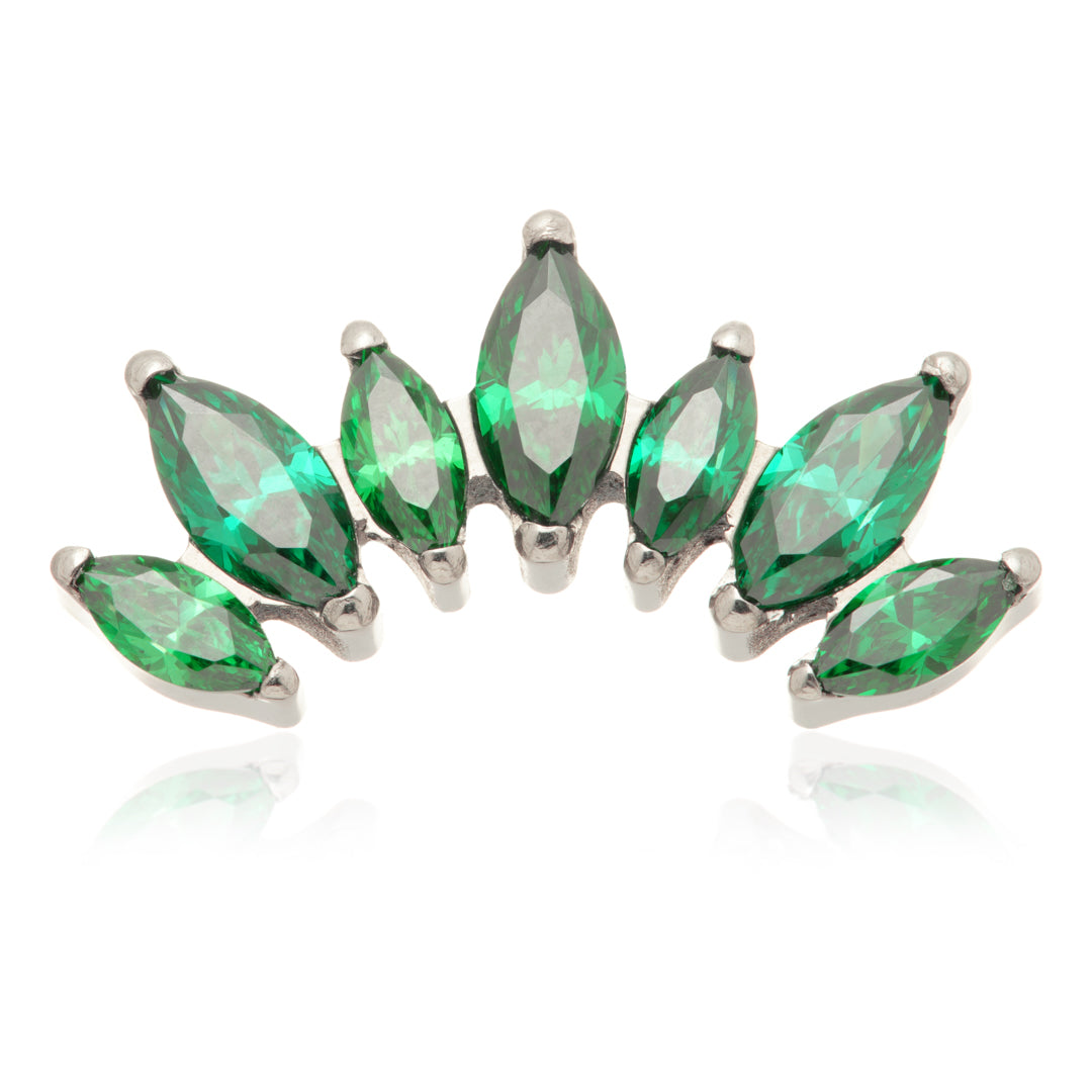Titanium Internal Prong Jewelled Marquise Cluster Attachment Gauge: 1.2mm (0.9mm thread) Size: 6.5mm x 13mm Gem Colours: Crystal / Amethyst / Champagne / Emerald / Garnet / Jet / Light Rose / Vitrail Medium CZ Gem Stones Medical Grade Titanium 6Al-4VEli ASTM:F-136