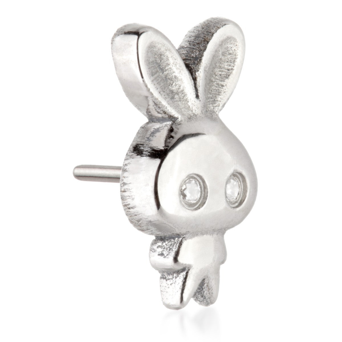 Titanium Threadless Jewelled Bunny Attachment Gauge: 1.0/1.2/1.6mm (0.5mm threadless) Attachment Size: 4.5mm x 8mm Gem Colour: CR CZ Gem Stones Medical Grade Titanium 6Al-4VEli ASTM:F-136