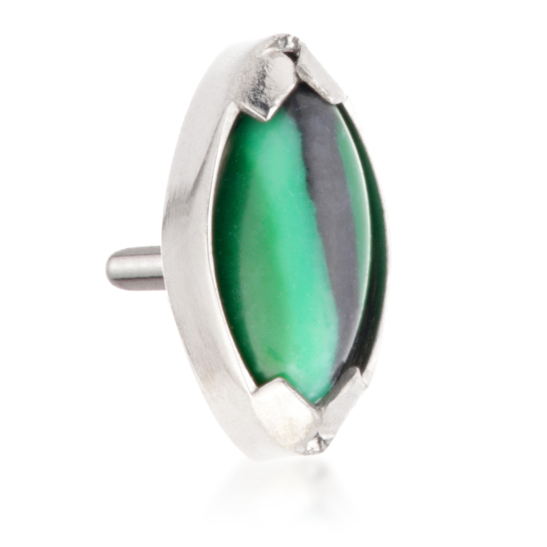 Ti Threadless Mini Malachite Marquise Attachment Attachment Size: 4*2mm Stone Colour: Malachite Medical Grade Titanium 6Al-4VEli ASTM:F-136