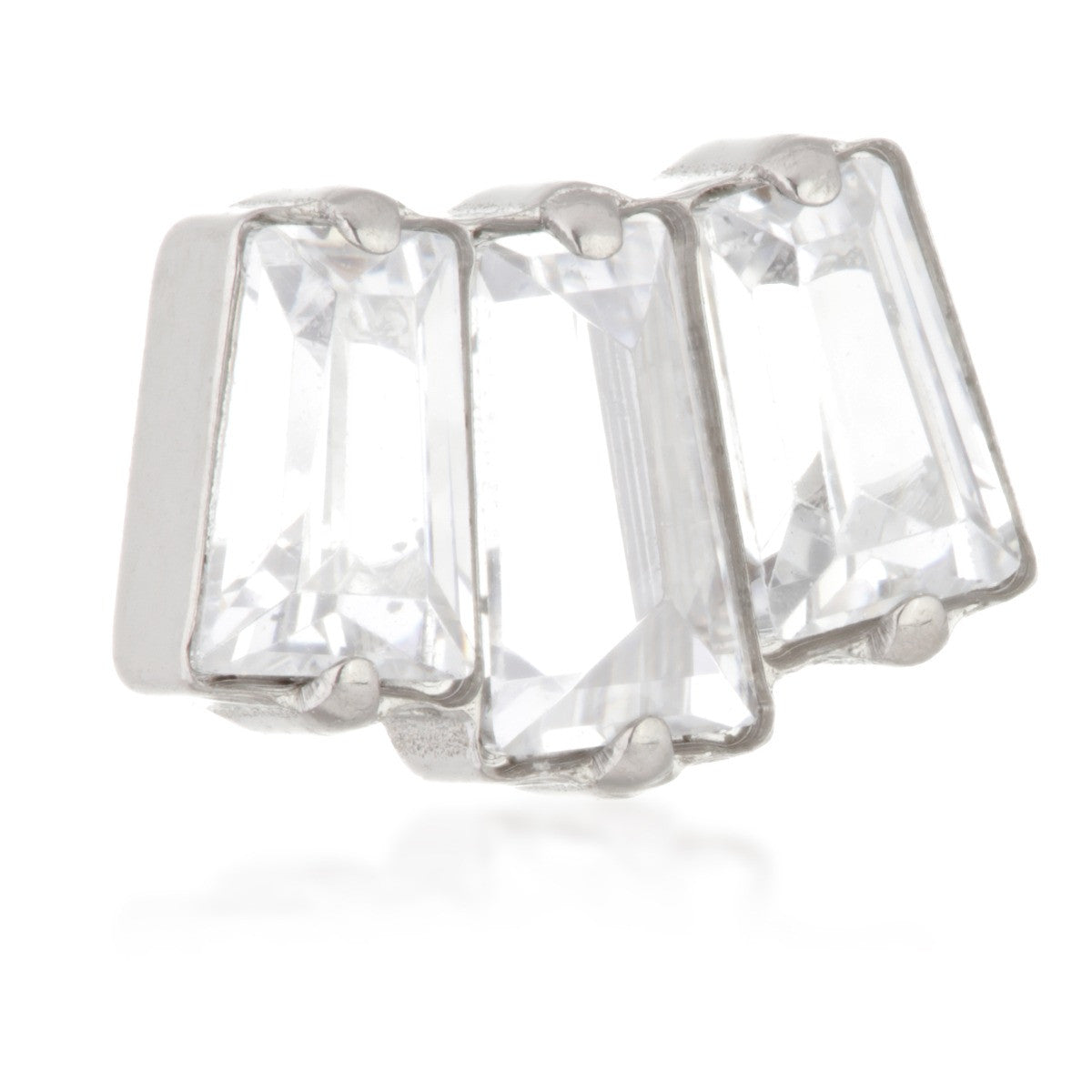 Ti Threadless Triple Baguette Cluster Attachment Attachment Size: Width: 6.4mm Height: 4.3mm Gem Colour: Crystal Medical Grade Titanium 6Al-4VEli ASTM:F-136